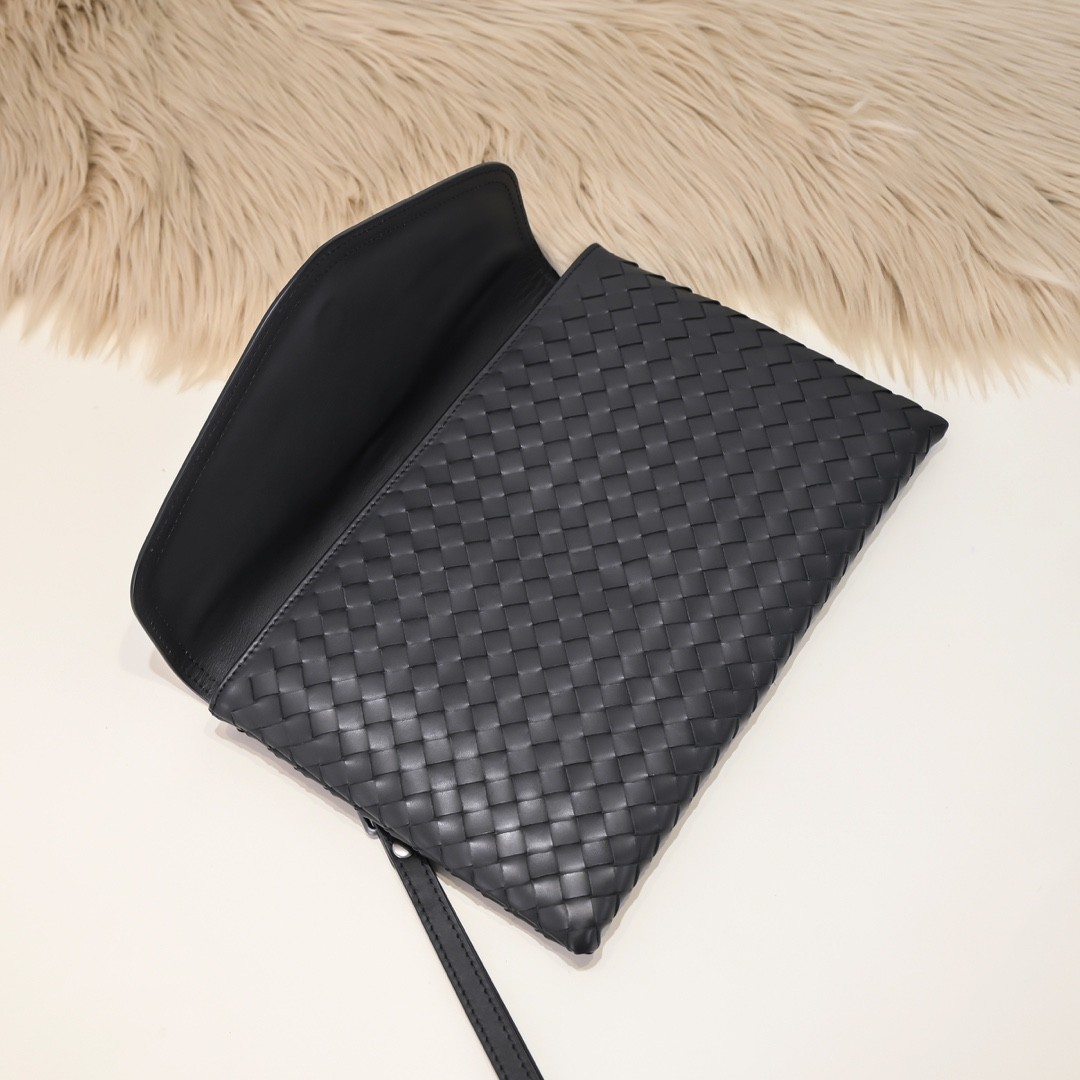 【BOTTEGA VENETA 寶緹嘉】Intrecciato 灰黑漸層手拿包|霧面拼色 × 編織皮革 × 義式極簡風