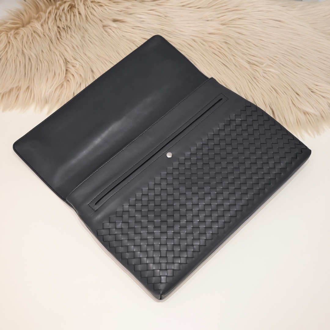 【BOTTEGA VENETA 寶緹嘉】Intrecciato 經典摺蓋公文手拿包|全皮編織 × 磁吸開合 × 都會商務質感