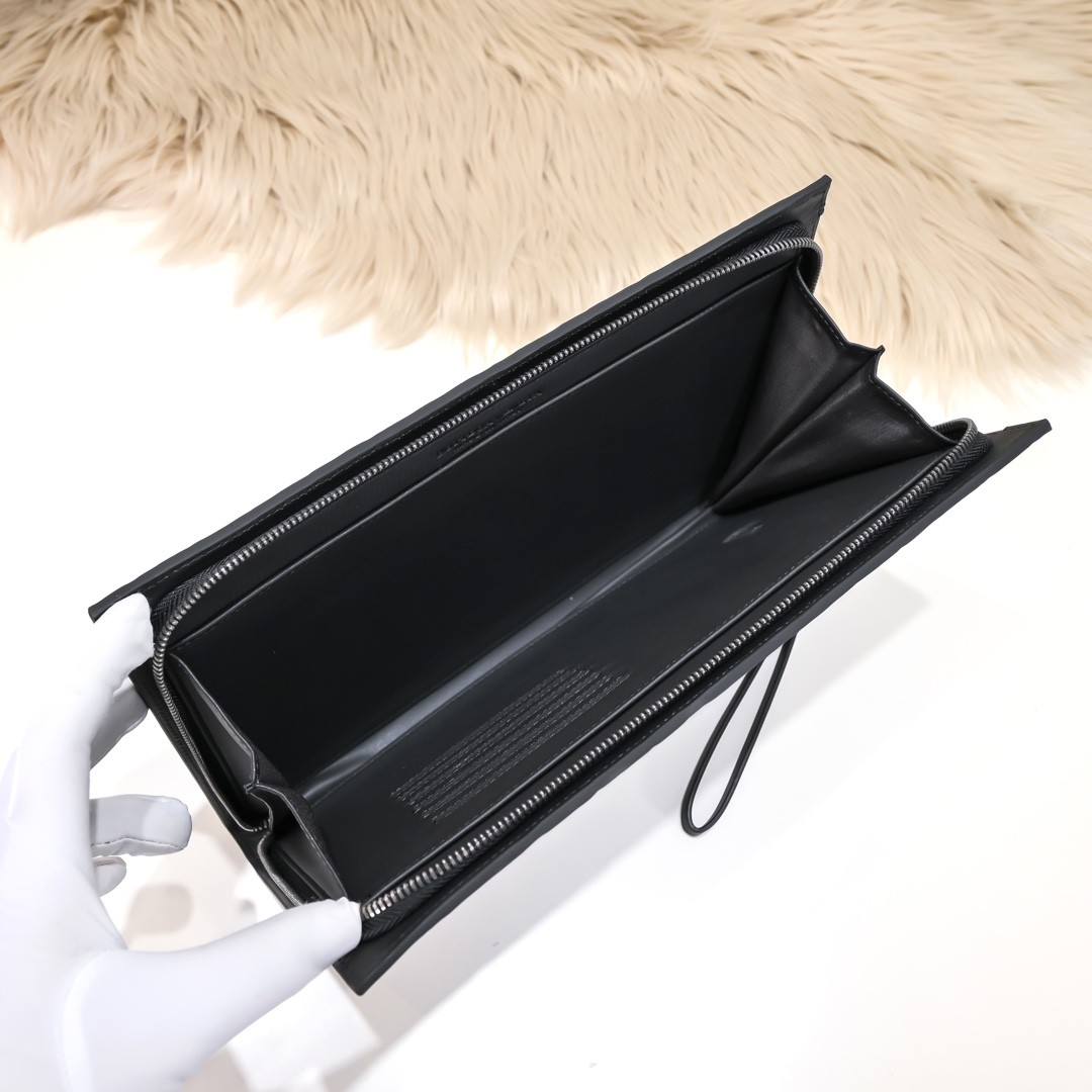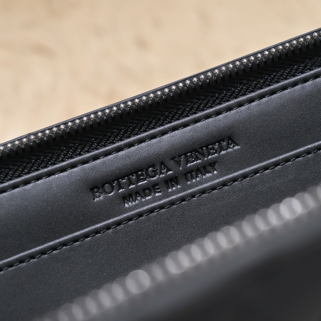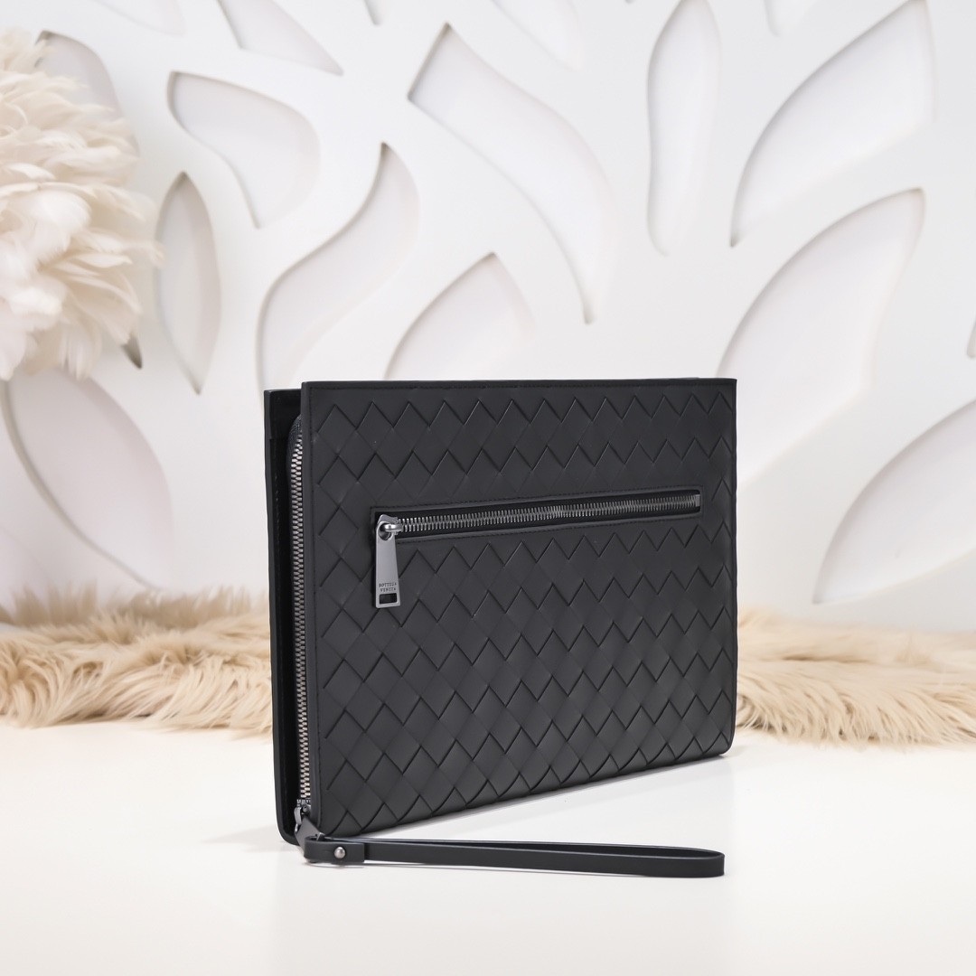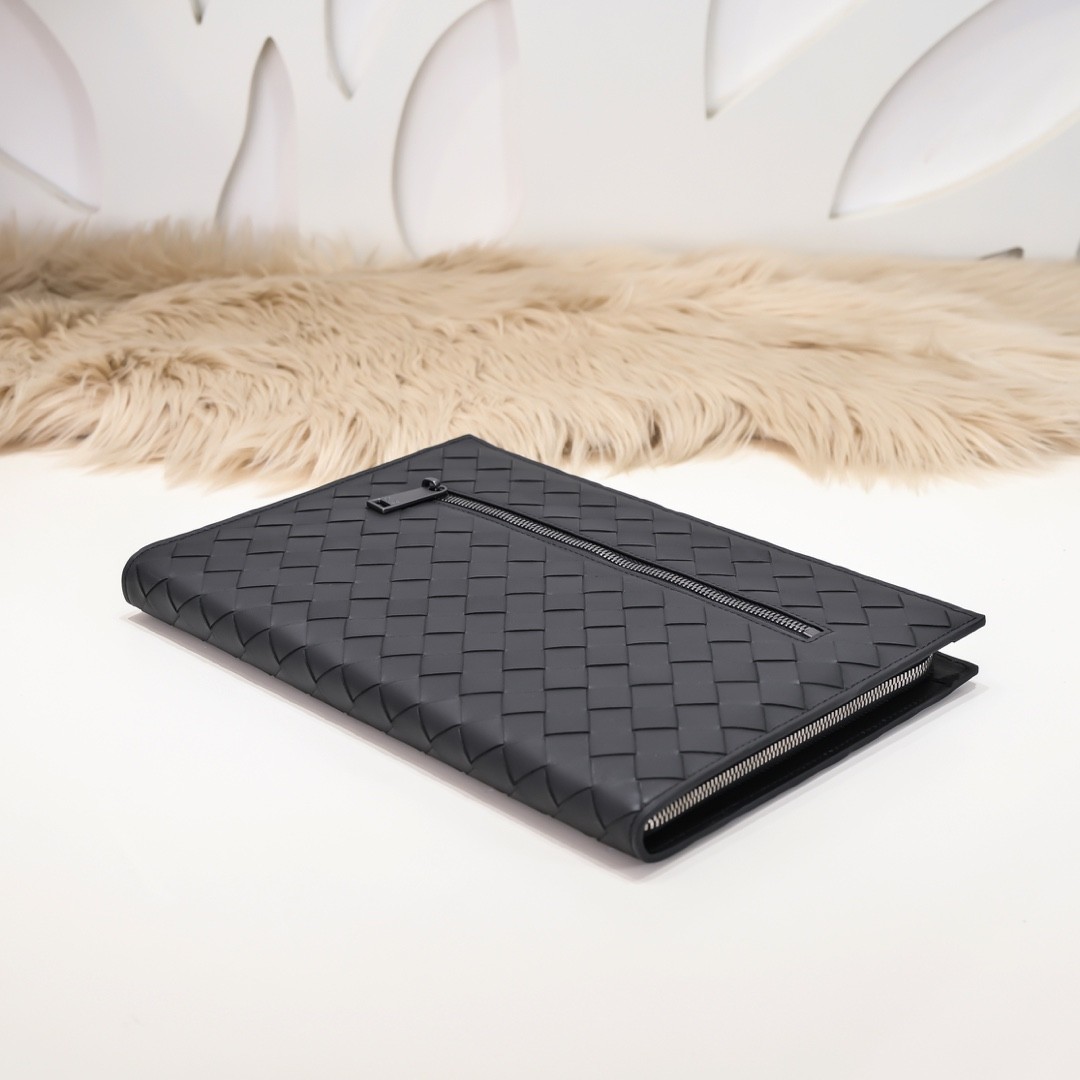 【BOTTEGA VENETA 寶緹嘉】Intrecciato 編織拉鍊手拿包|霧黑牛皮 × 前袋設計 × 商務休閒百搭款