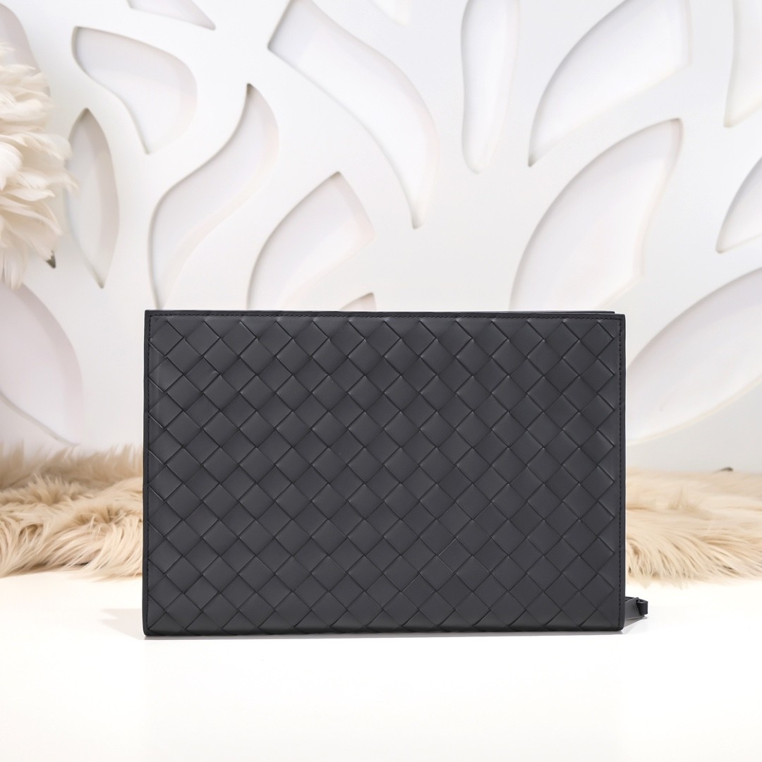 【BOTTEGA VENETA 寶緹嘉】Intrecciato 灰黑漸層手拿包|霧面拼色 × 編織皮革 × 義式極簡風