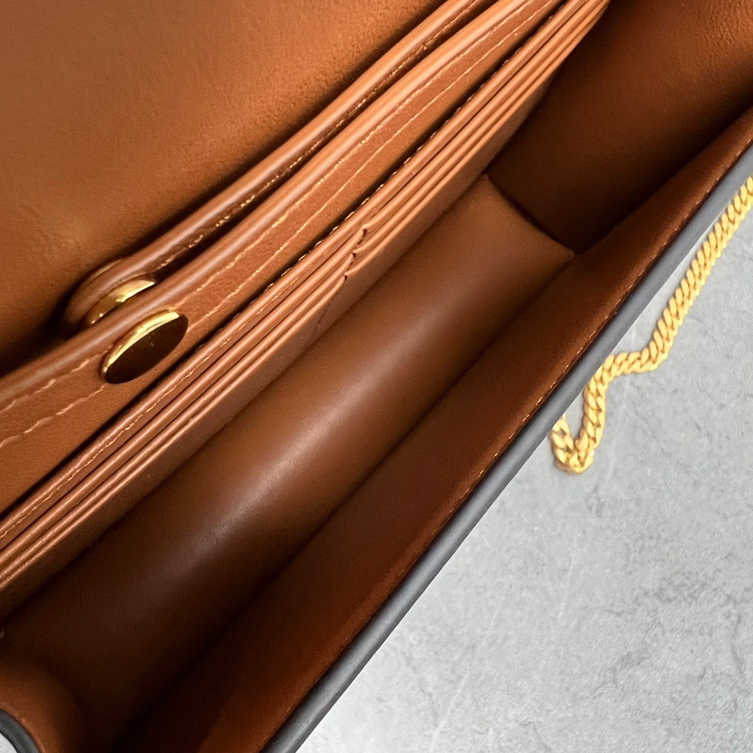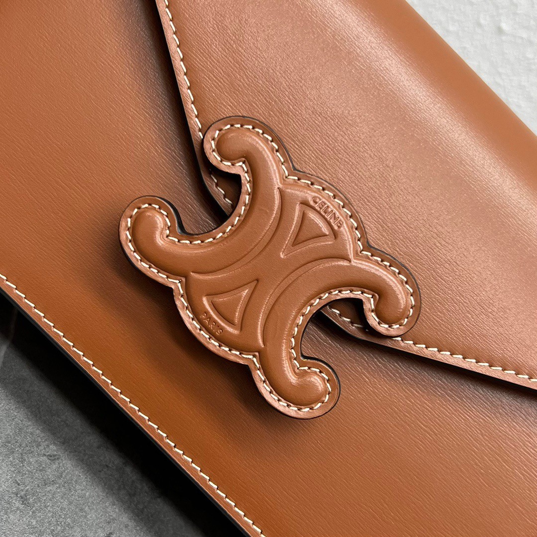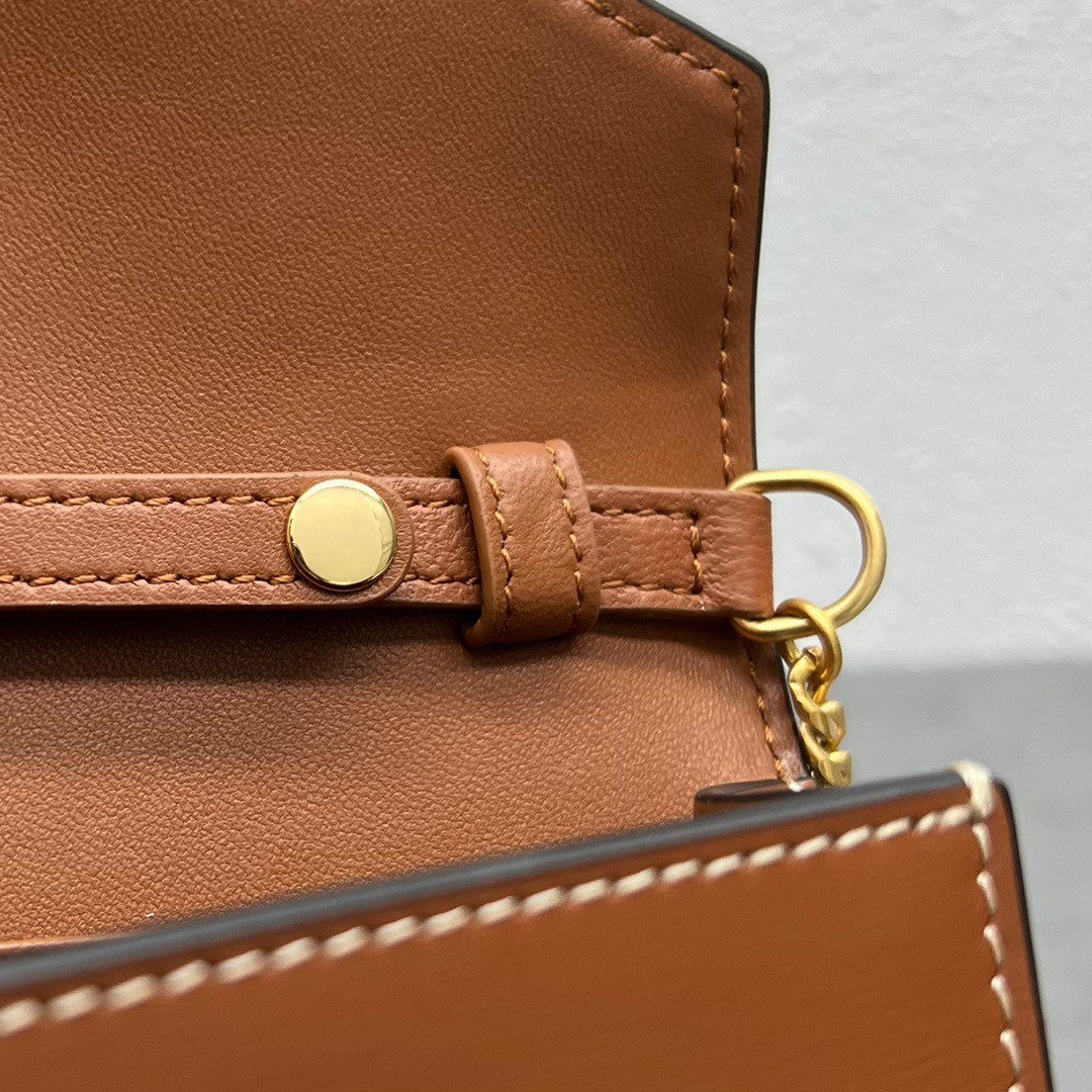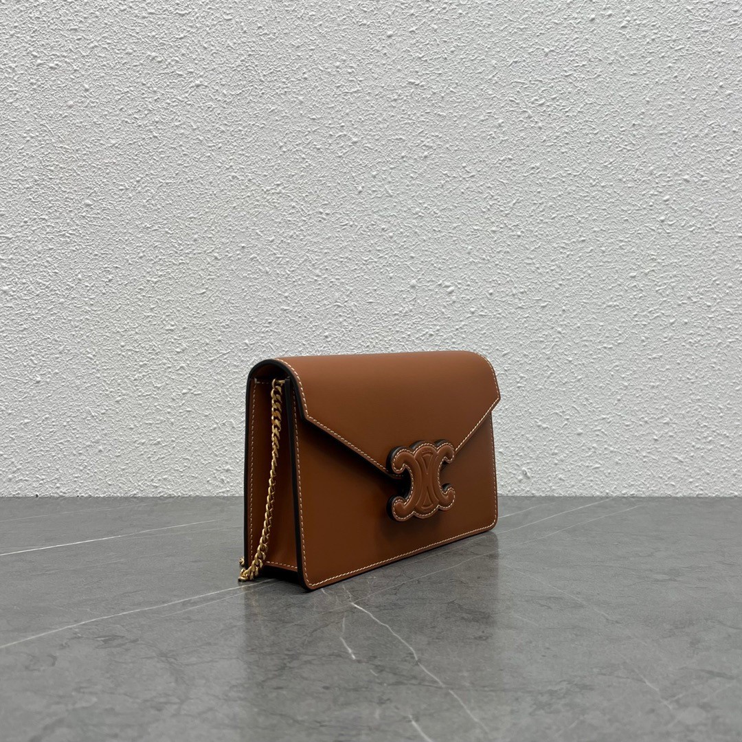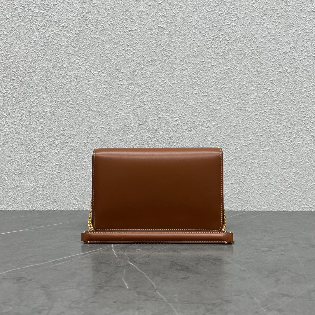 CELINE Shiny Calfskin Triomphe Margo Wallet on Chain Tan