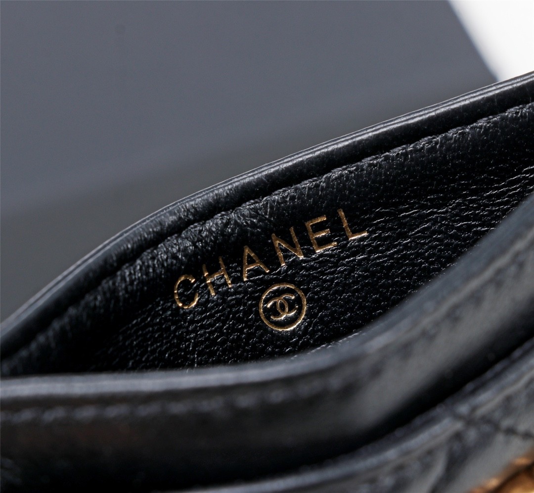 CHANEL 香奈兒 Chain Logo Quilted Card Holder 鏈條雙C菱格紋卡夾(黑金款)