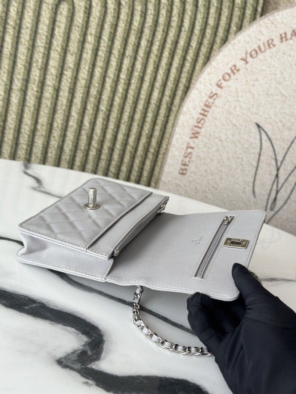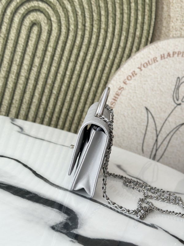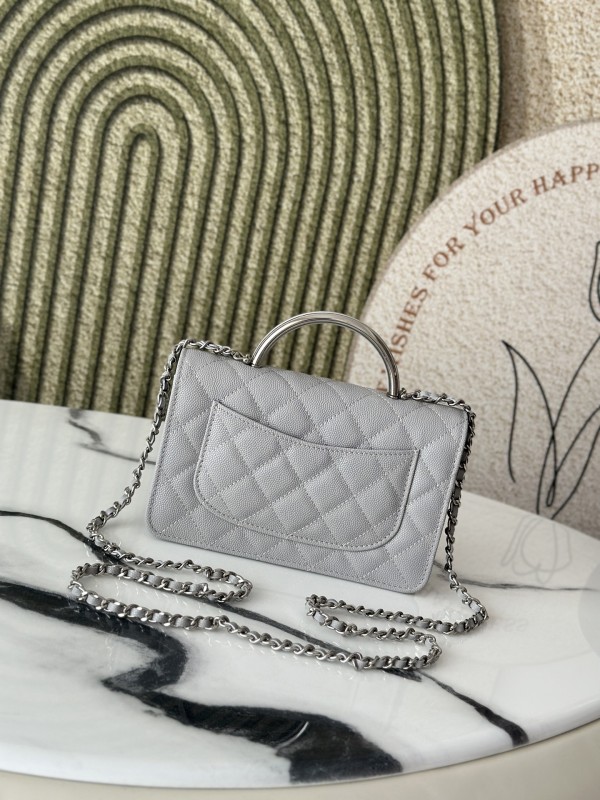 CHANEL 香奈兒 Mini Top Handle Flap 小型菱格紋鏈條包(灰銀款)