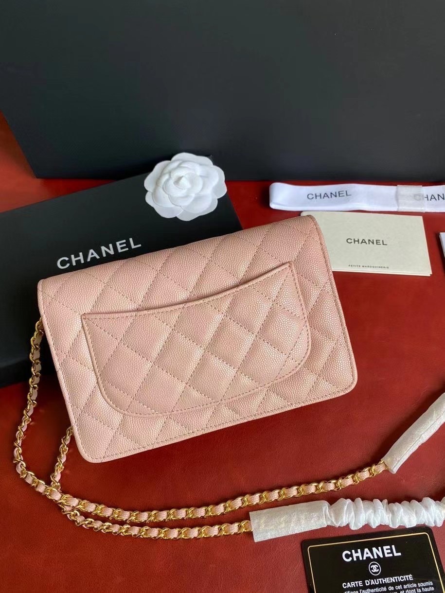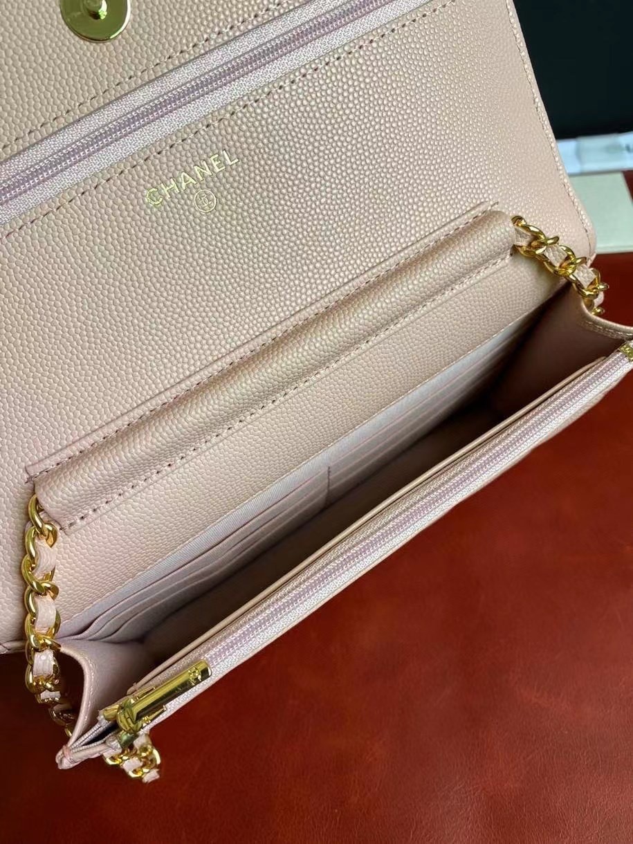 CHANEL經典菱格紋雙C粒面牛皮WOC 粉色