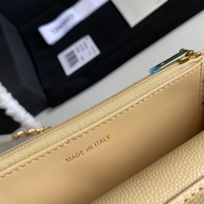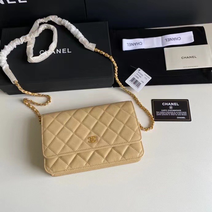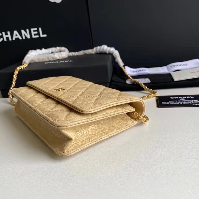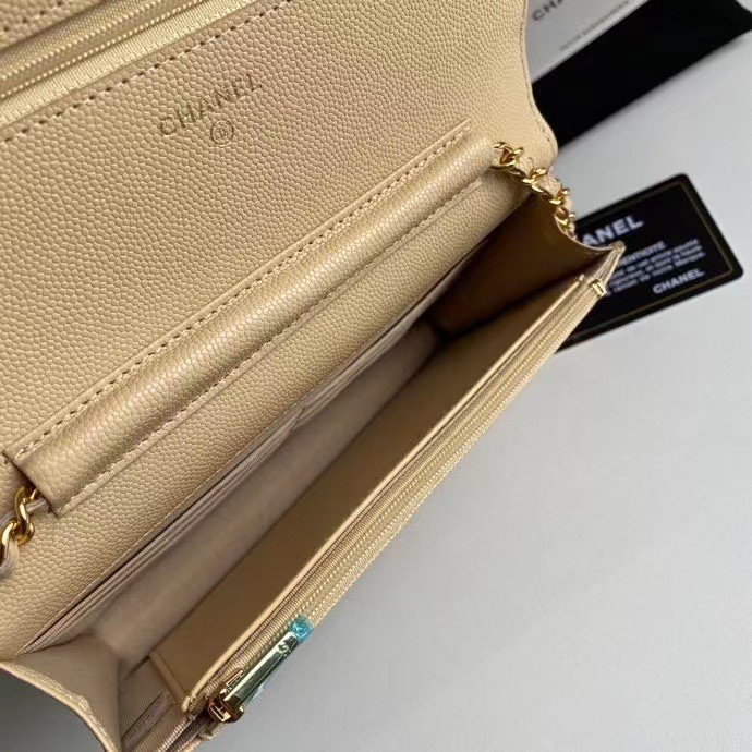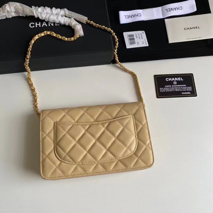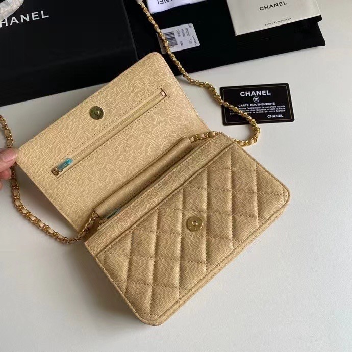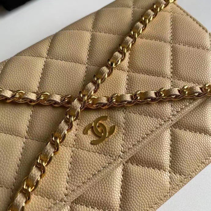CHANEL經典菱格紋雙C粒面牛皮WOC