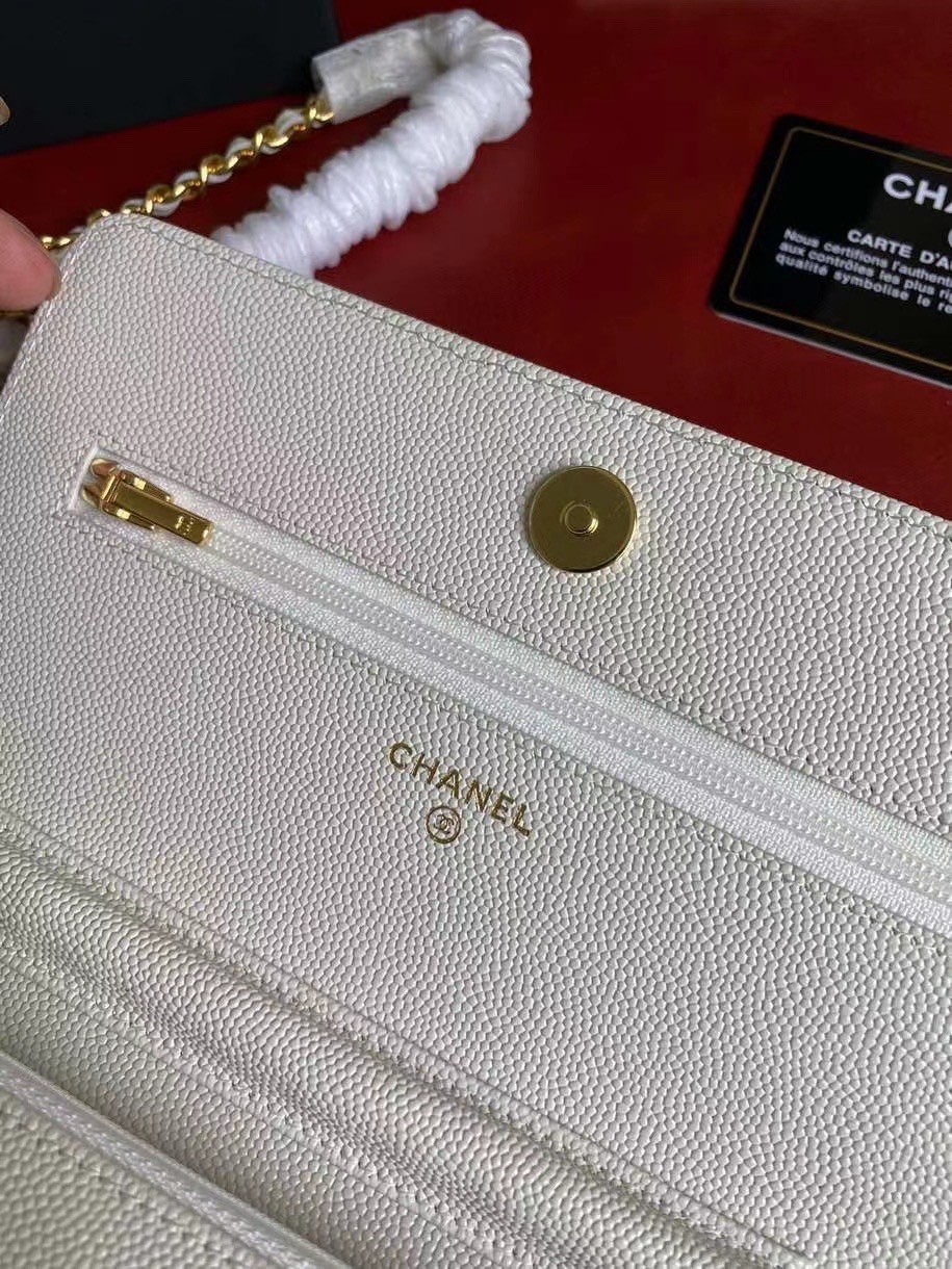 CHANEL經典菱格紋雙C粒面牛皮WOC 白色