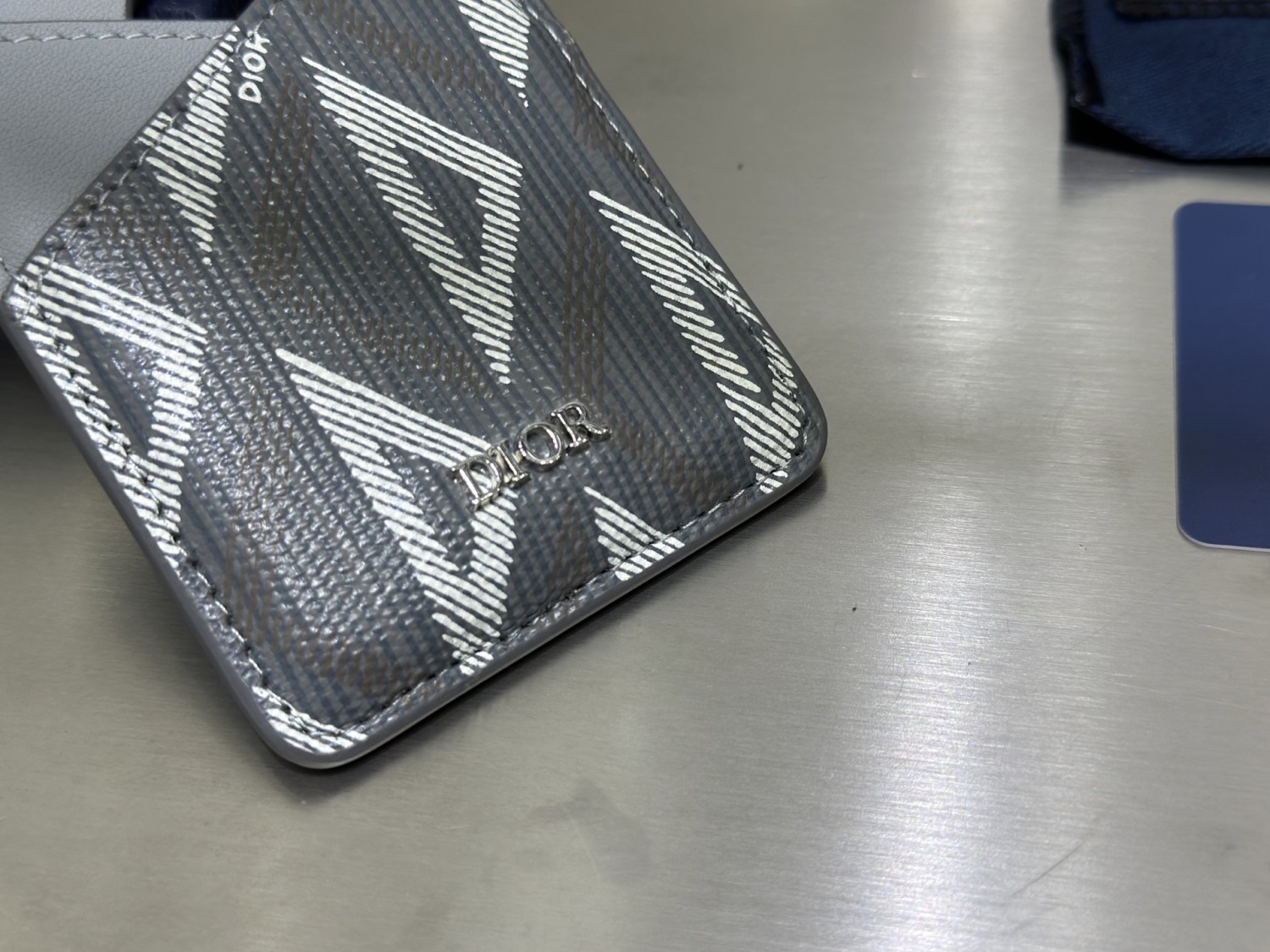 【Dior 迪奧】Oblique 卡夾(灰銀款)|灰色小牛皮,幾何印花,Dior字母Logo