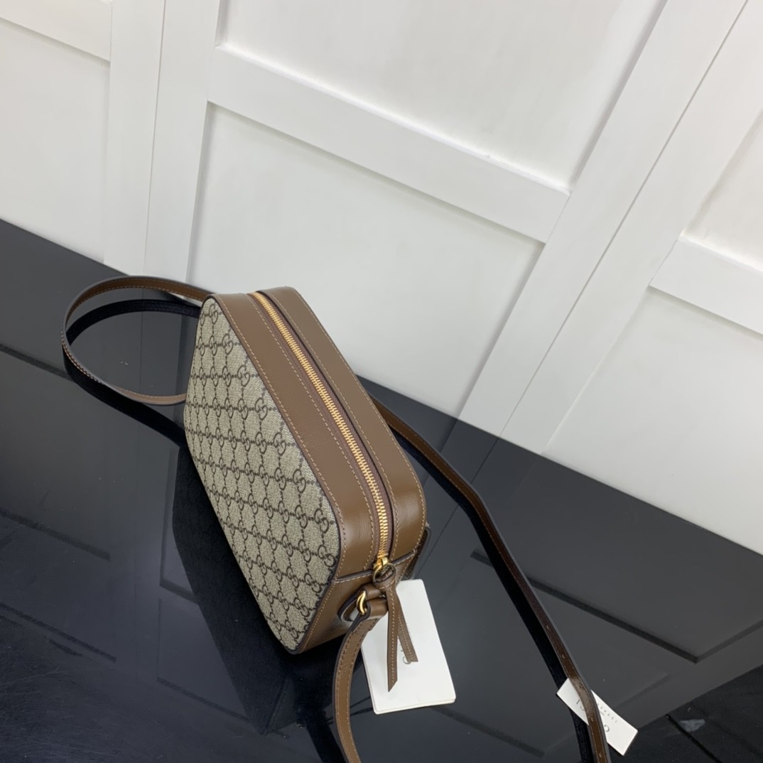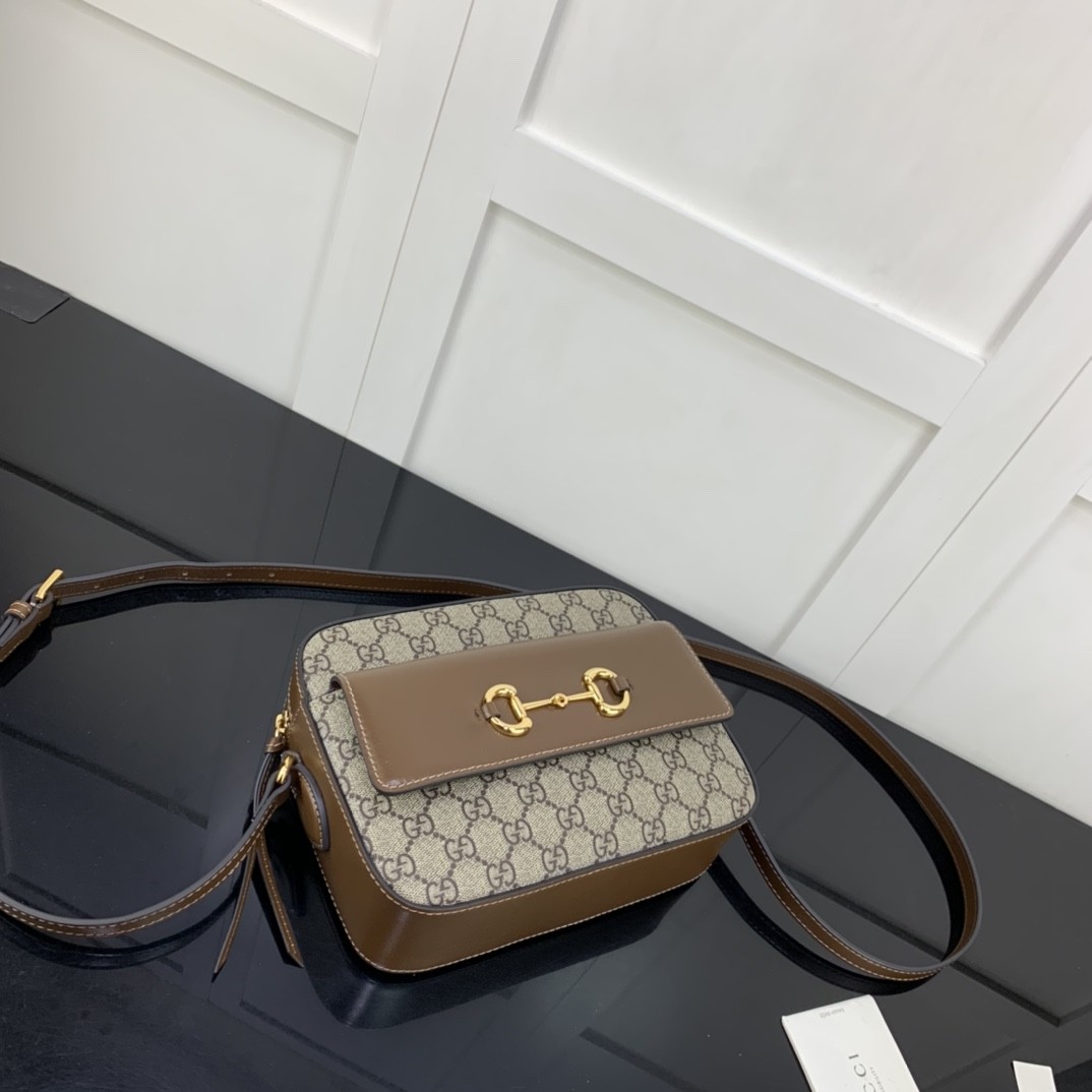 【GUCCI 古馳】Horsebit 1955 GG Supreme 相機包|馬銜扣 × 焦糖皮革拼接 × 經典老花設計