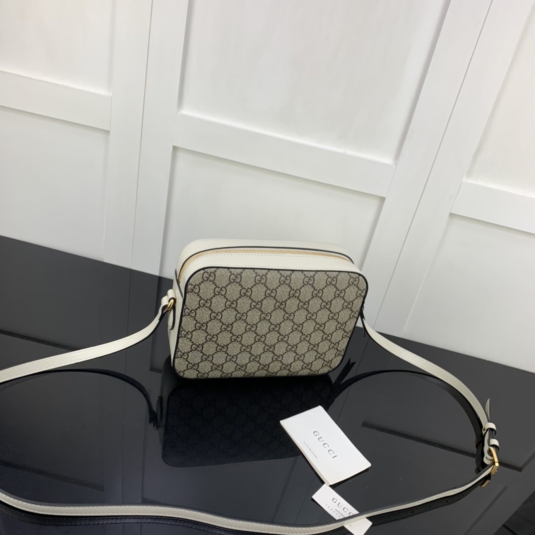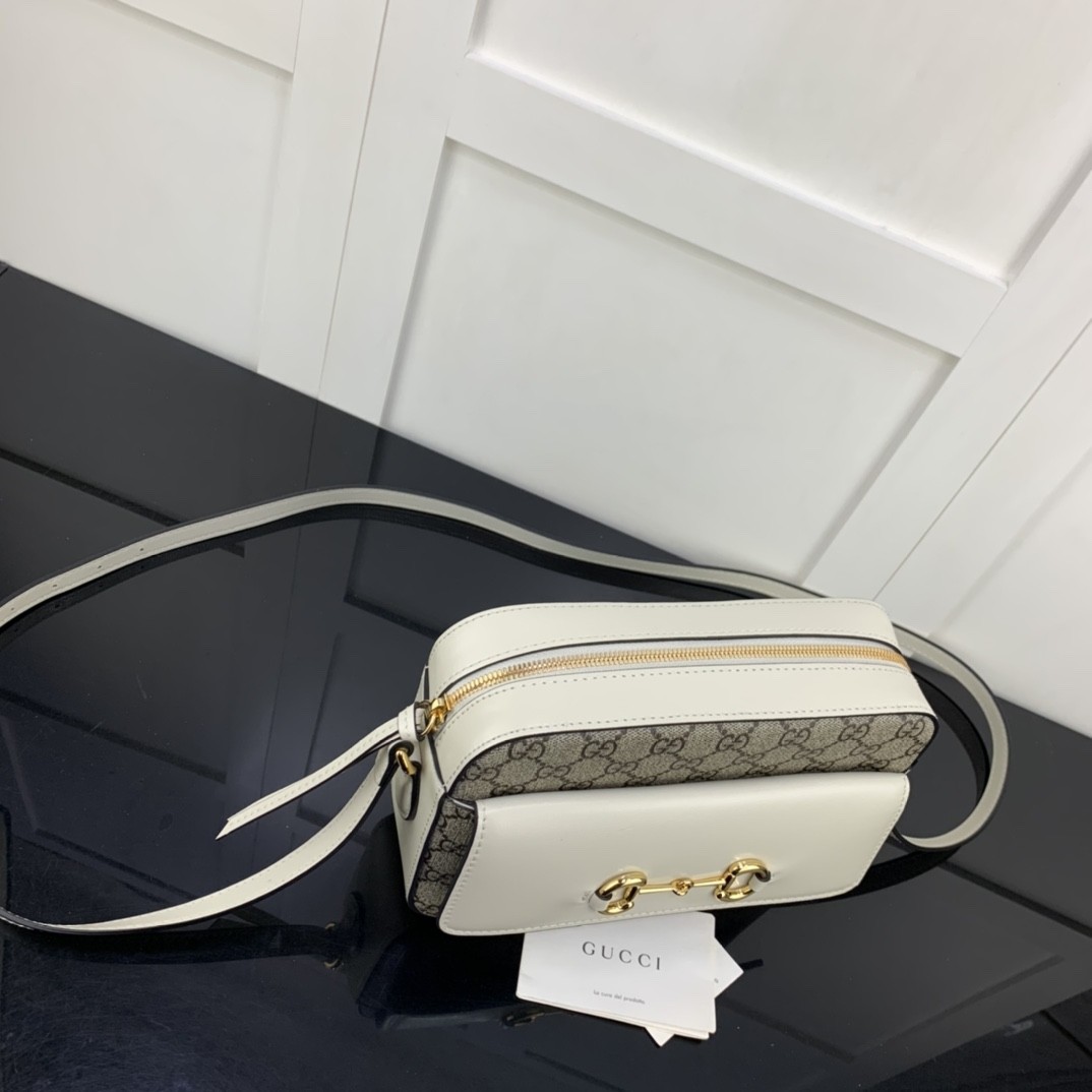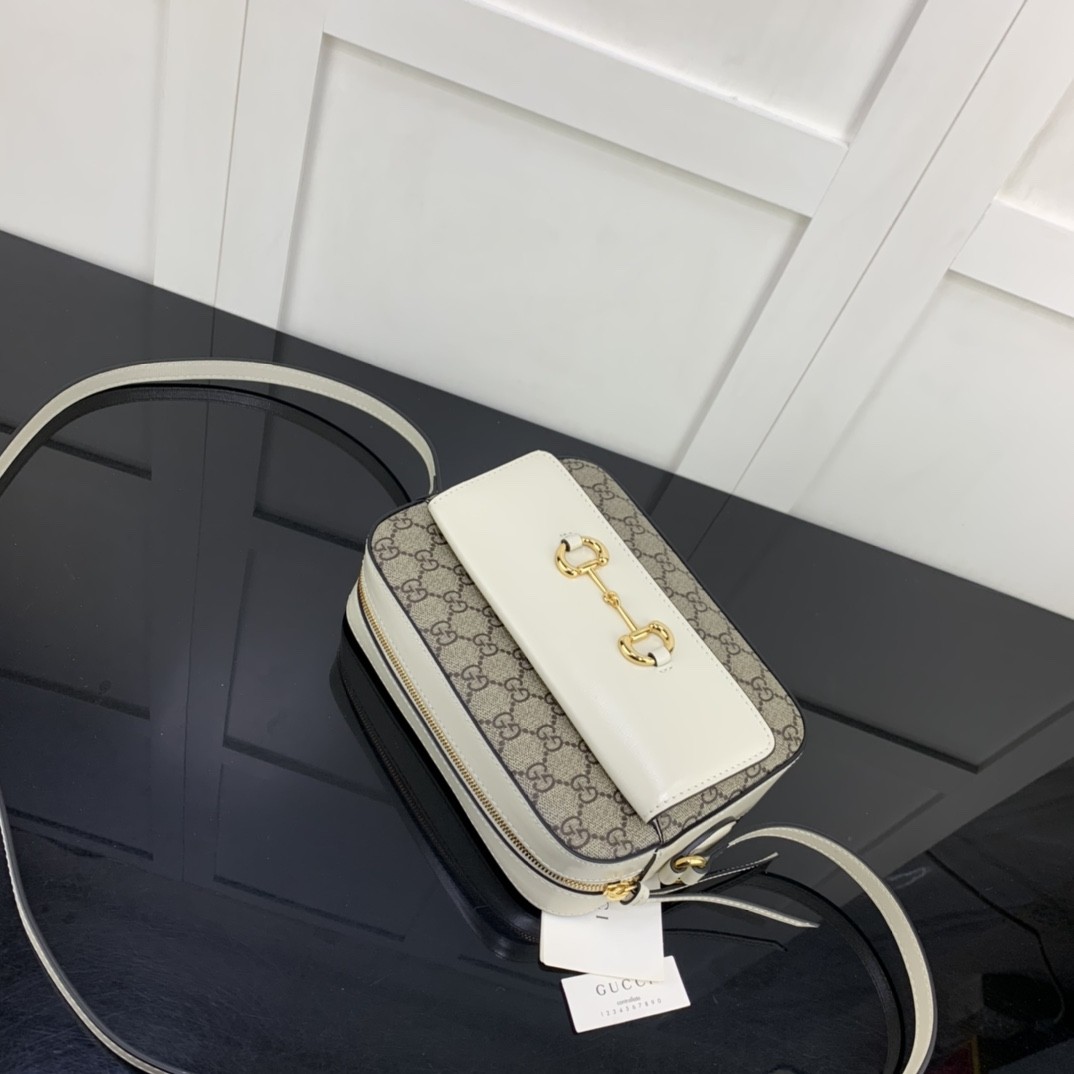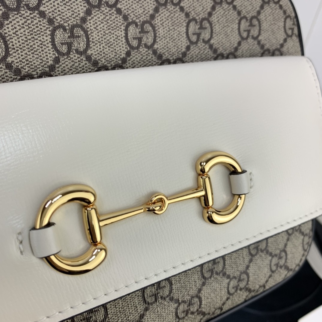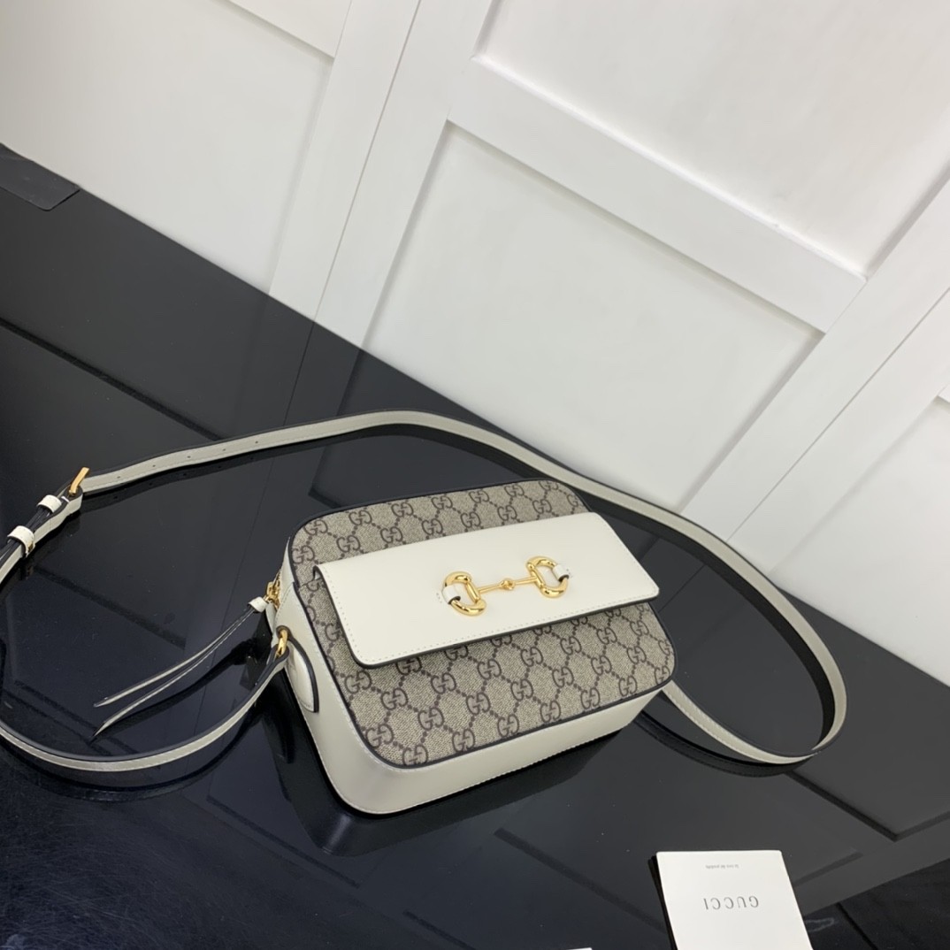 【GUCCI 古馳】Horsebit 1955 GG Supreme 相機包|奶白拼米棕 × 經典馬銜扣 × 復古老花設計