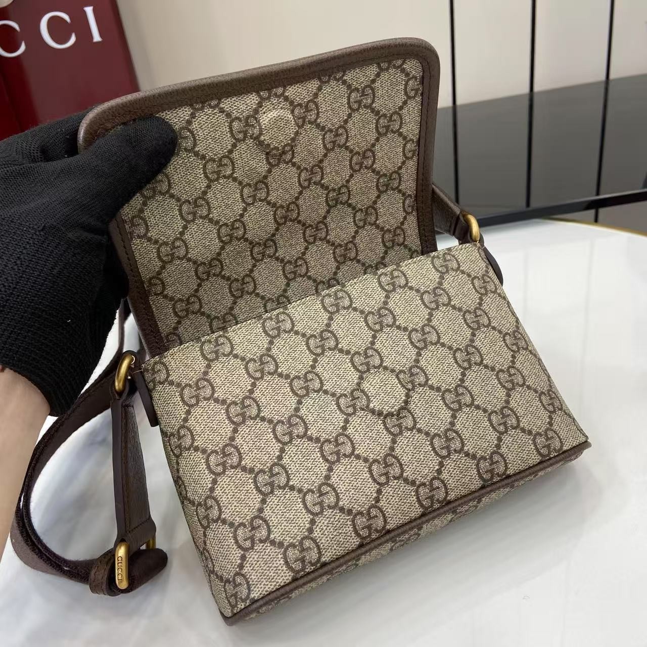 【GUCCI 古馳】Horsebit 1955 GG Supreme 相機包|奶白拼米棕 × 經典馬銜扣 × 復古老花設計
