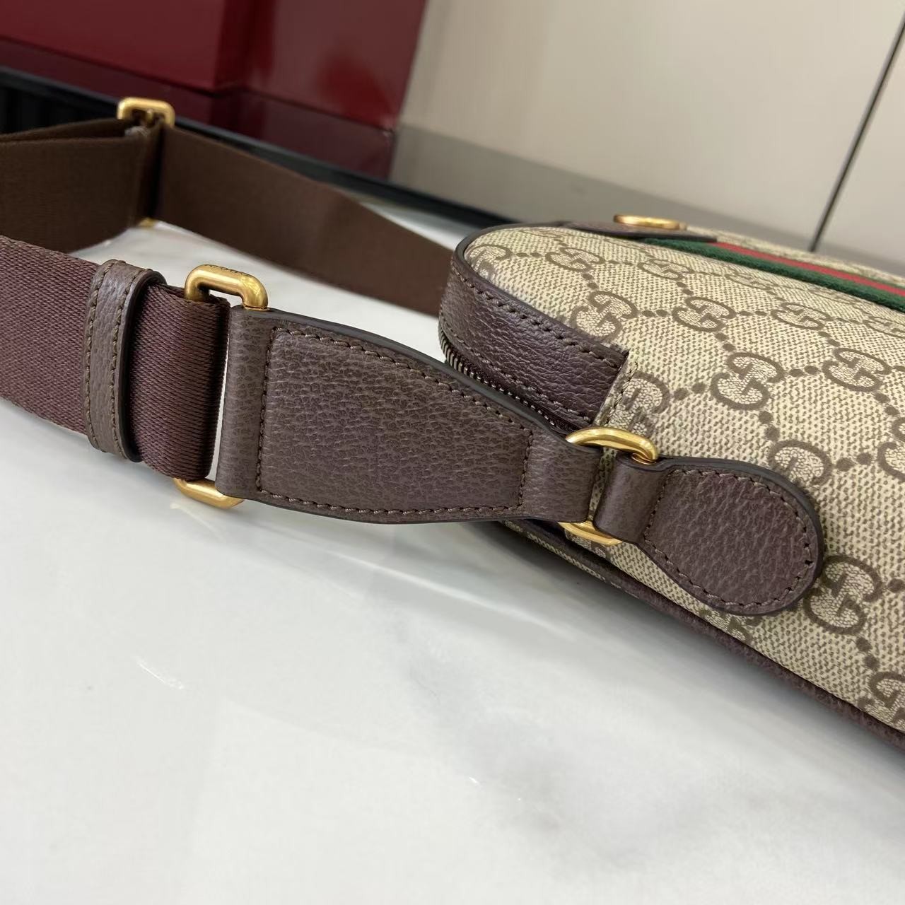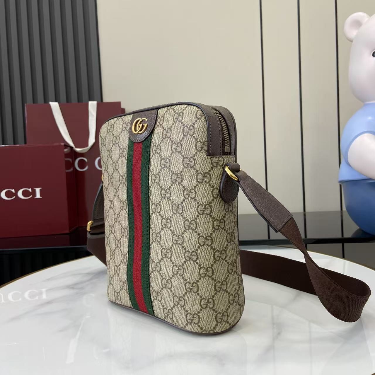 【GUCCI 古馳】Ophidia GG Supreme 縱版斜背包|經典紅綠織帶 × 雙G金扣 × 帆布拼皮設計
