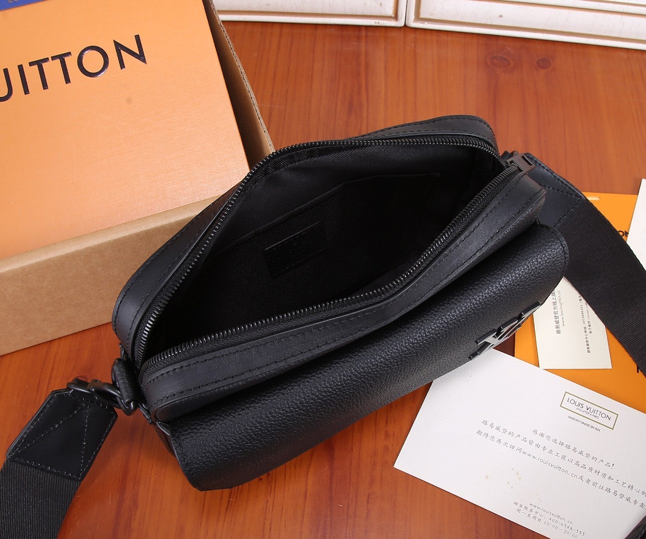 【LOUIS VUITTON 路易威登】Avenue 全黑壓紋皮革斜背包|極簡黑魂設計 × 立體LV標誌 × 都會型格男包