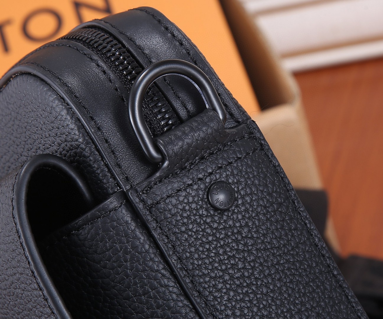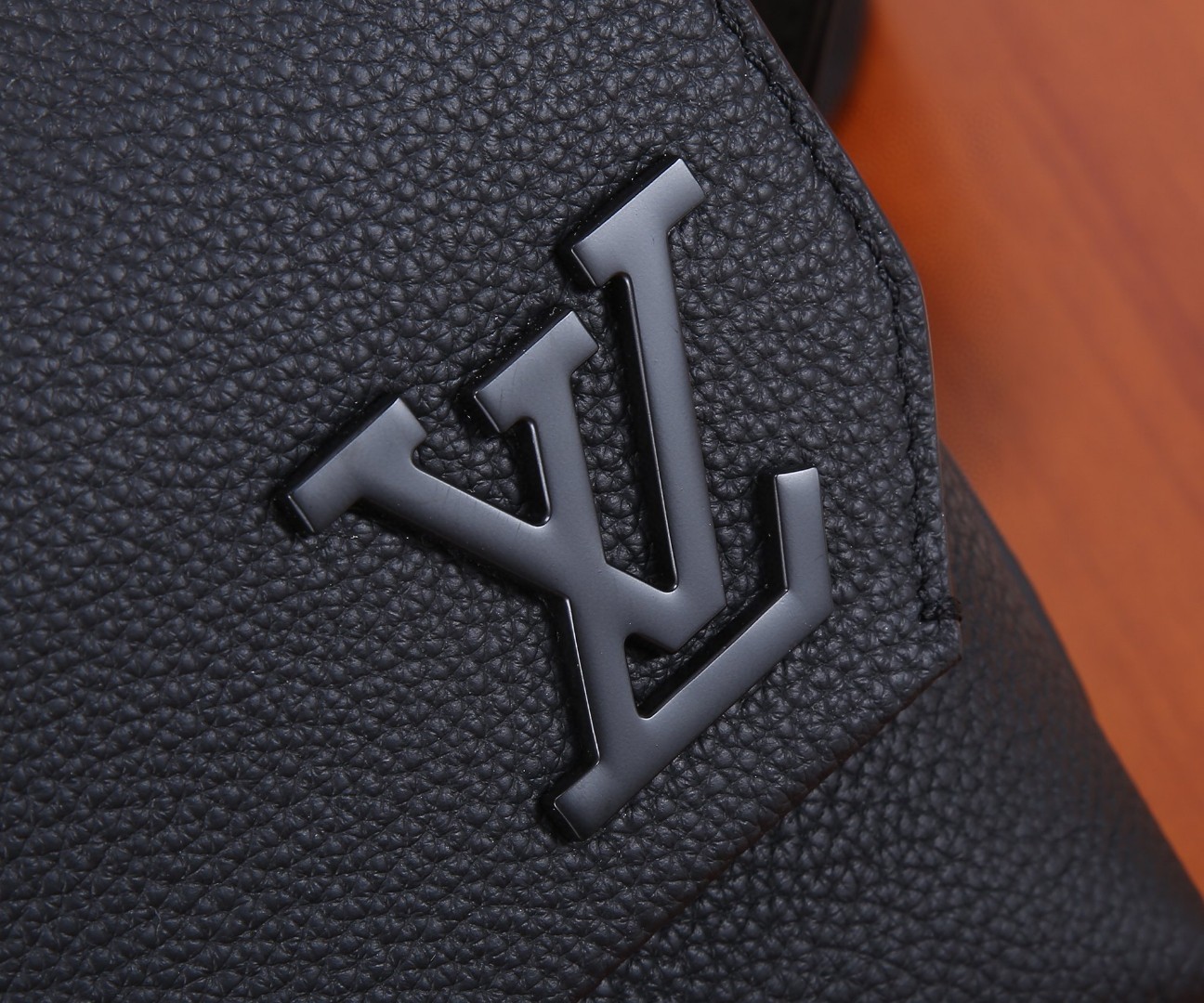 【LOUIS VUITTON 路易威登】Discovery Sling Bag 斜背胸包|全黑壓紋皮革 × LV浮雕標誌 × 都會簡約風