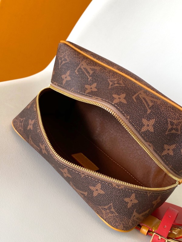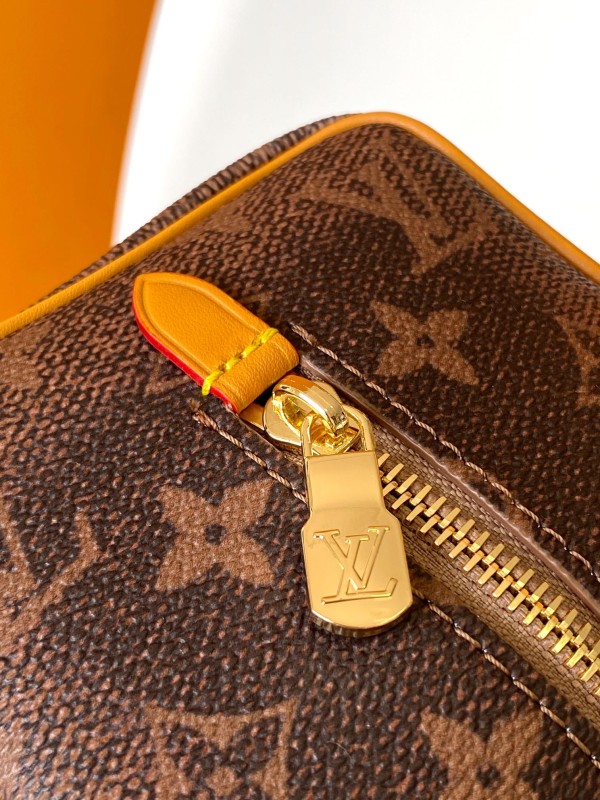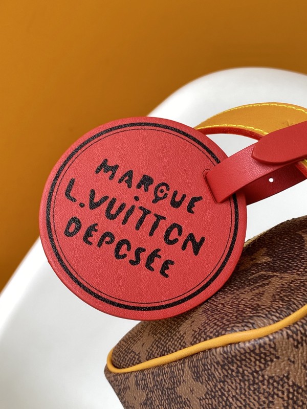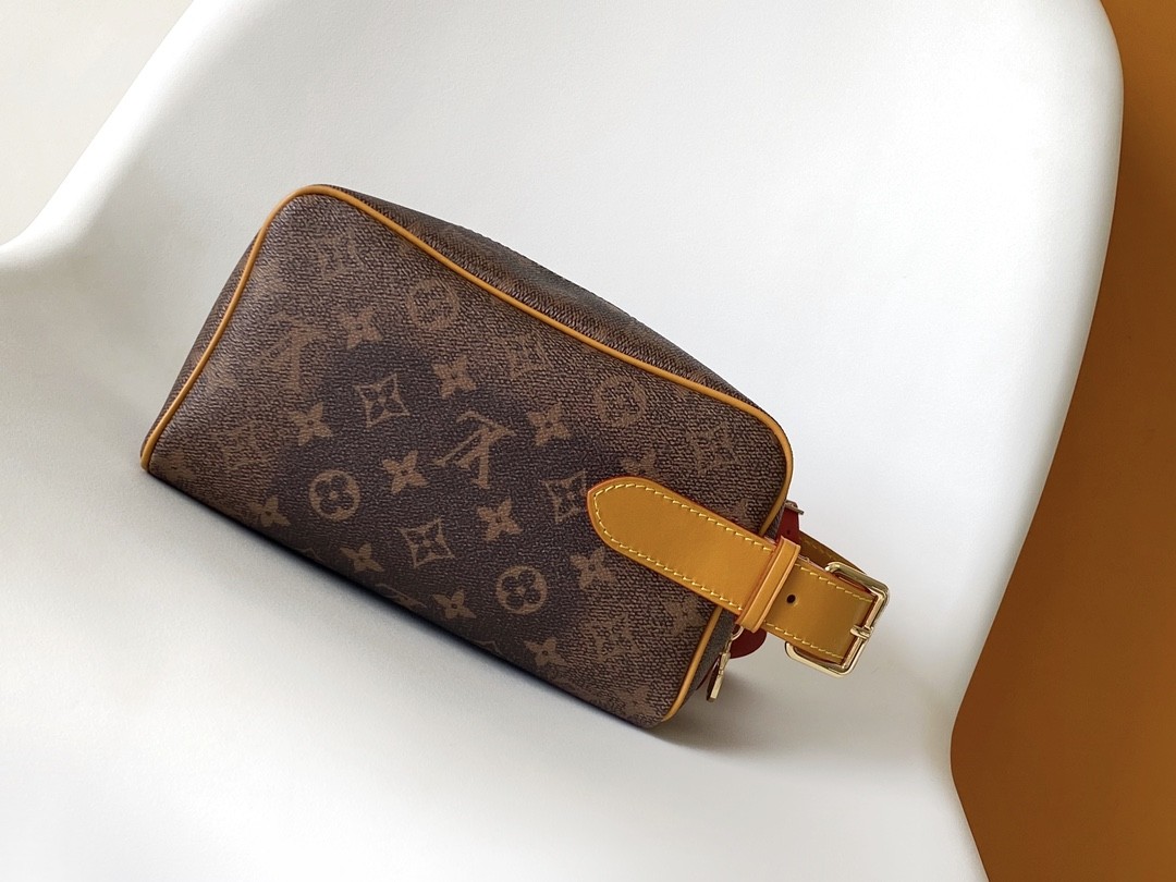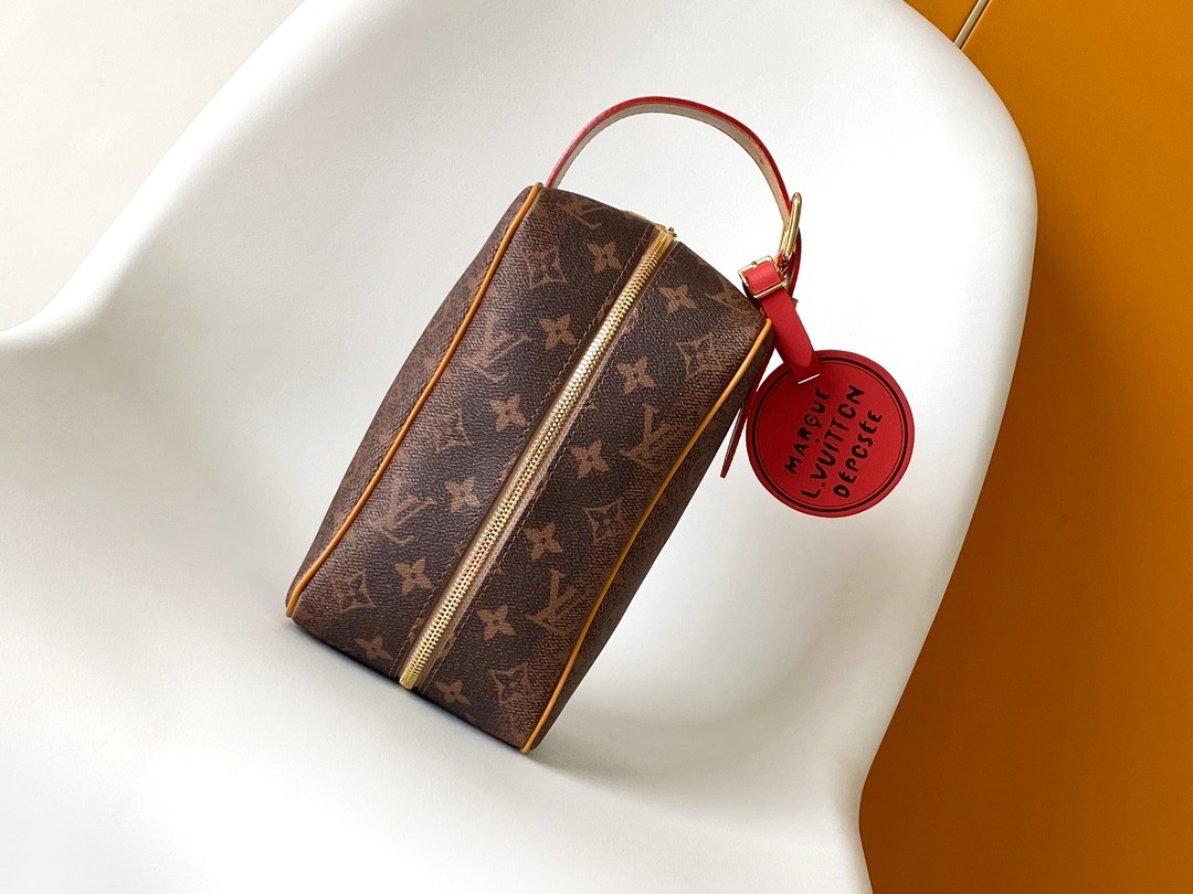 【LOUIS VUITTON 路易威登】Monogram 經典棕旅行盥洗包|黃邊飾條 × 紅標吊飾 × 復古設計