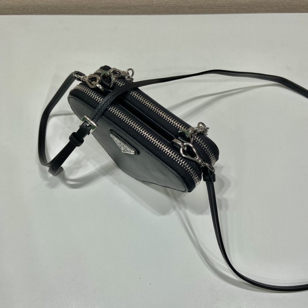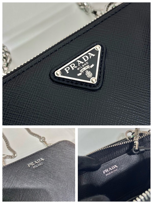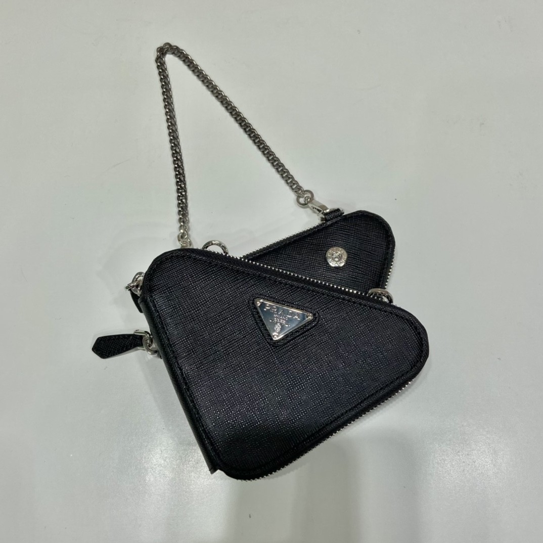 【PRADA】三角 Logo 皮革造型包|經典 Saffiano 材質 × 銀鏈細節 × 雙層收納設計
