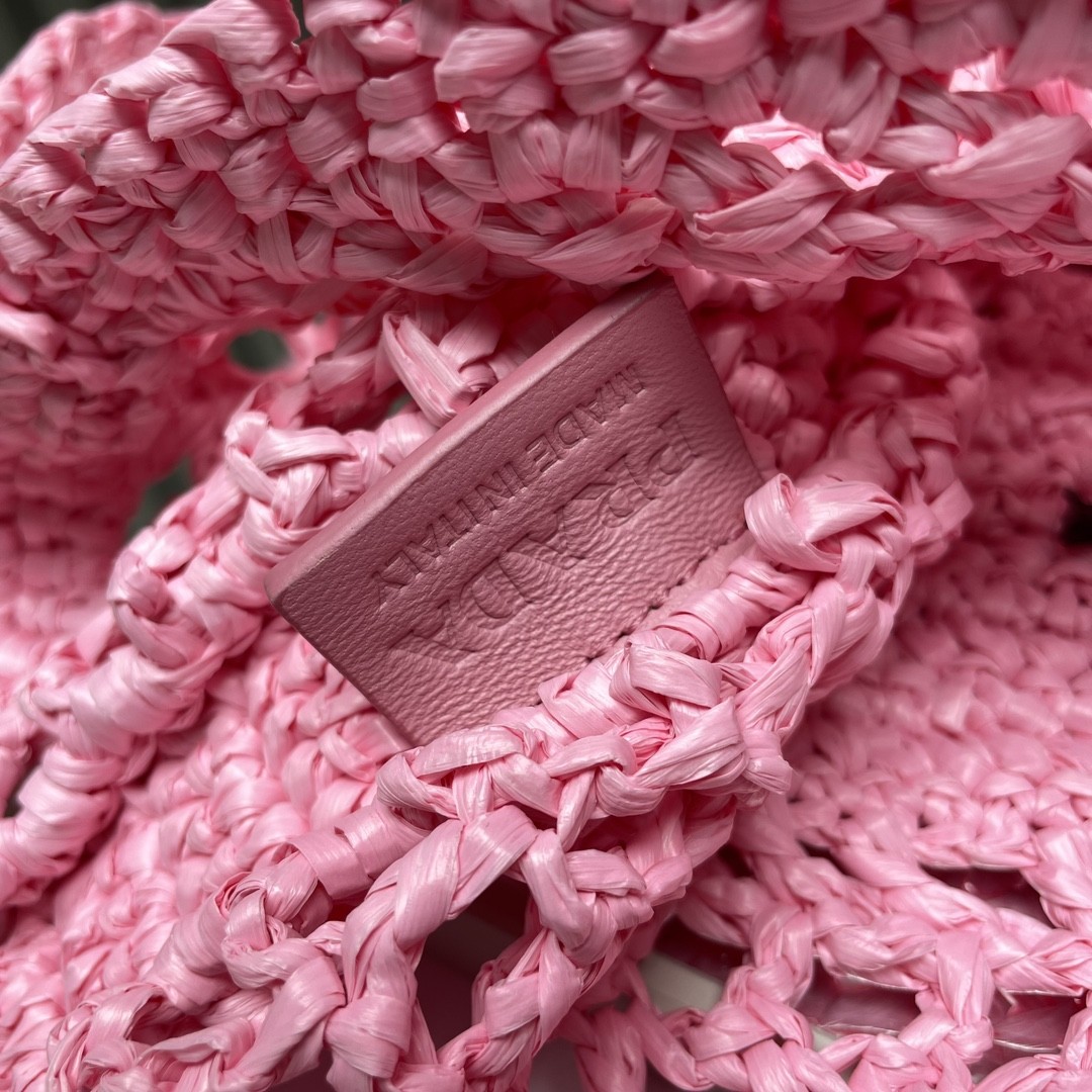 【PRADA 普拉達】Raffia 編織托特包|甜粉色 × 手工鏤空 × 夏日限定