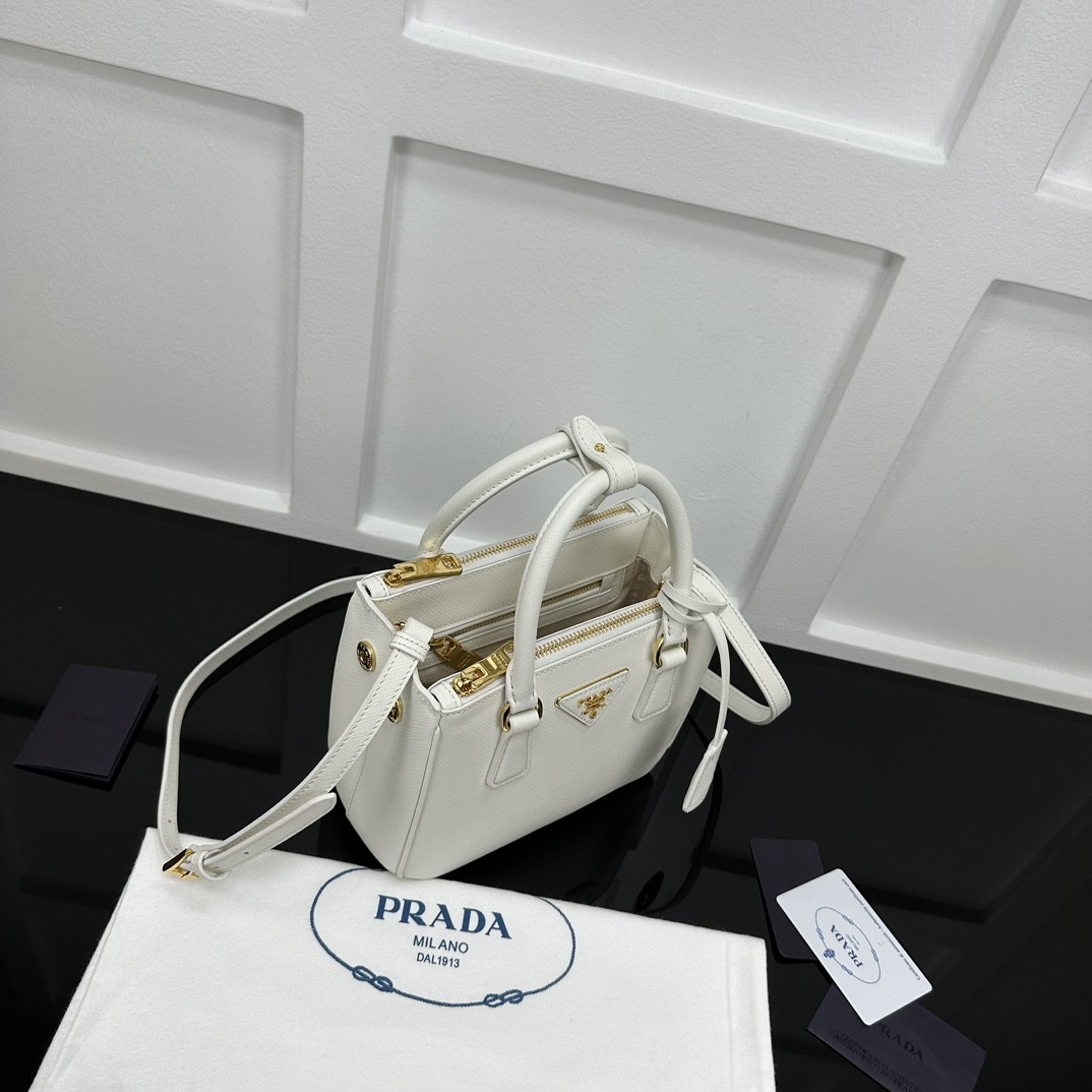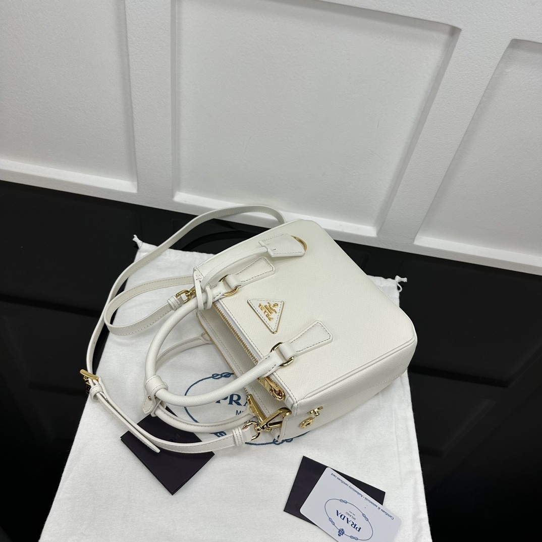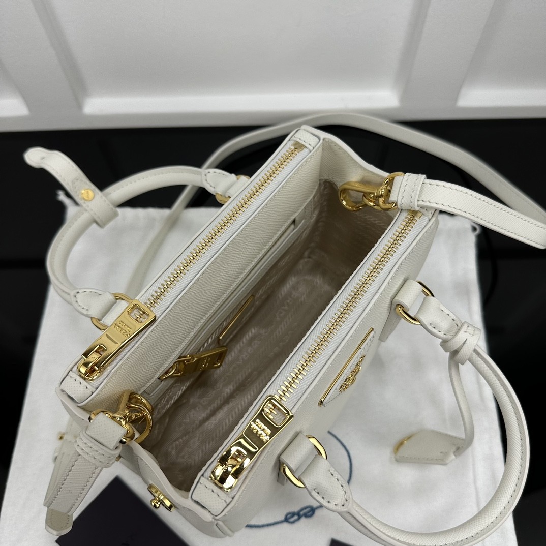 【PRADA】Galleria Mini Saffiano 手提包|象牙白 × 金扣 × 雙層拉鍊