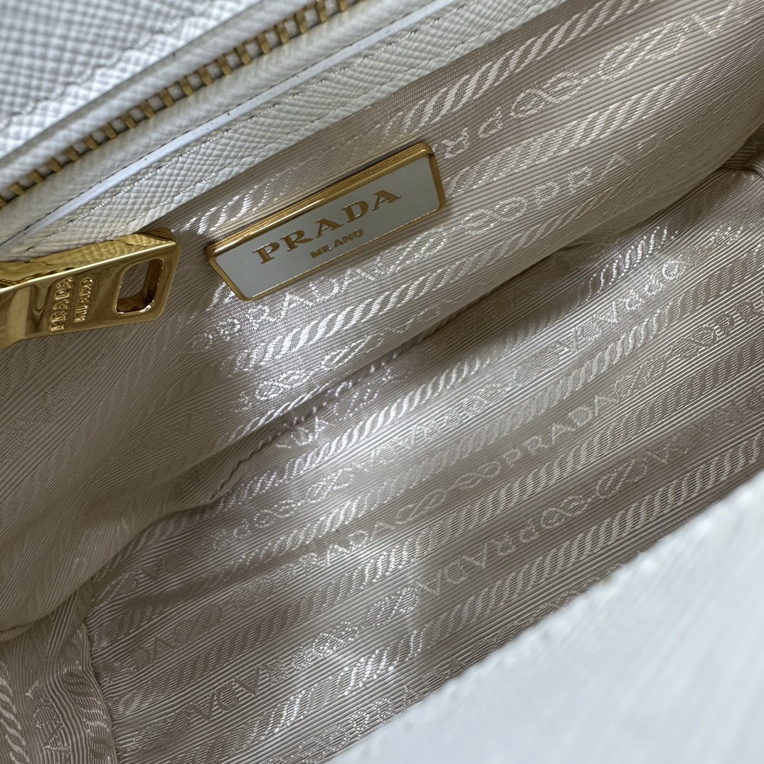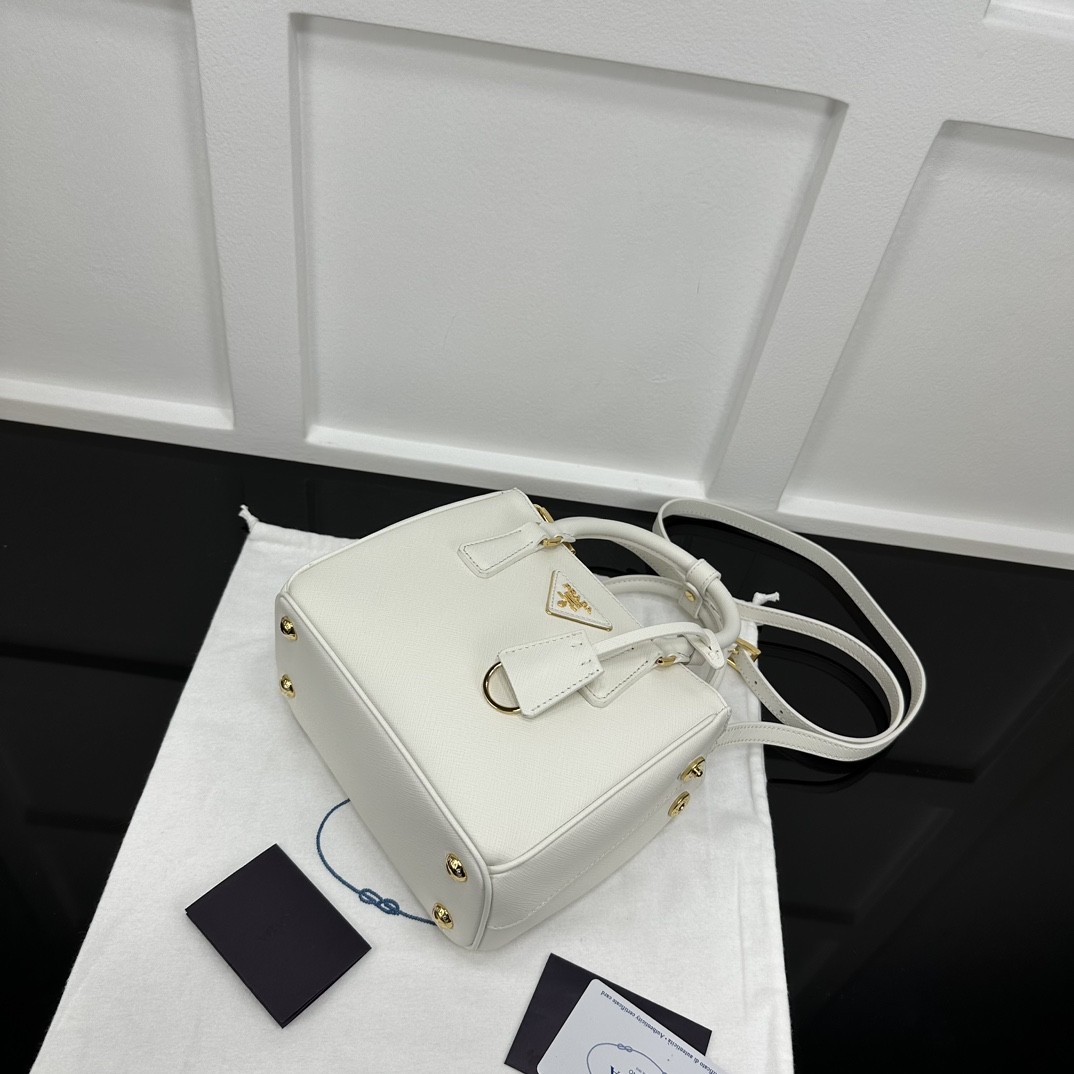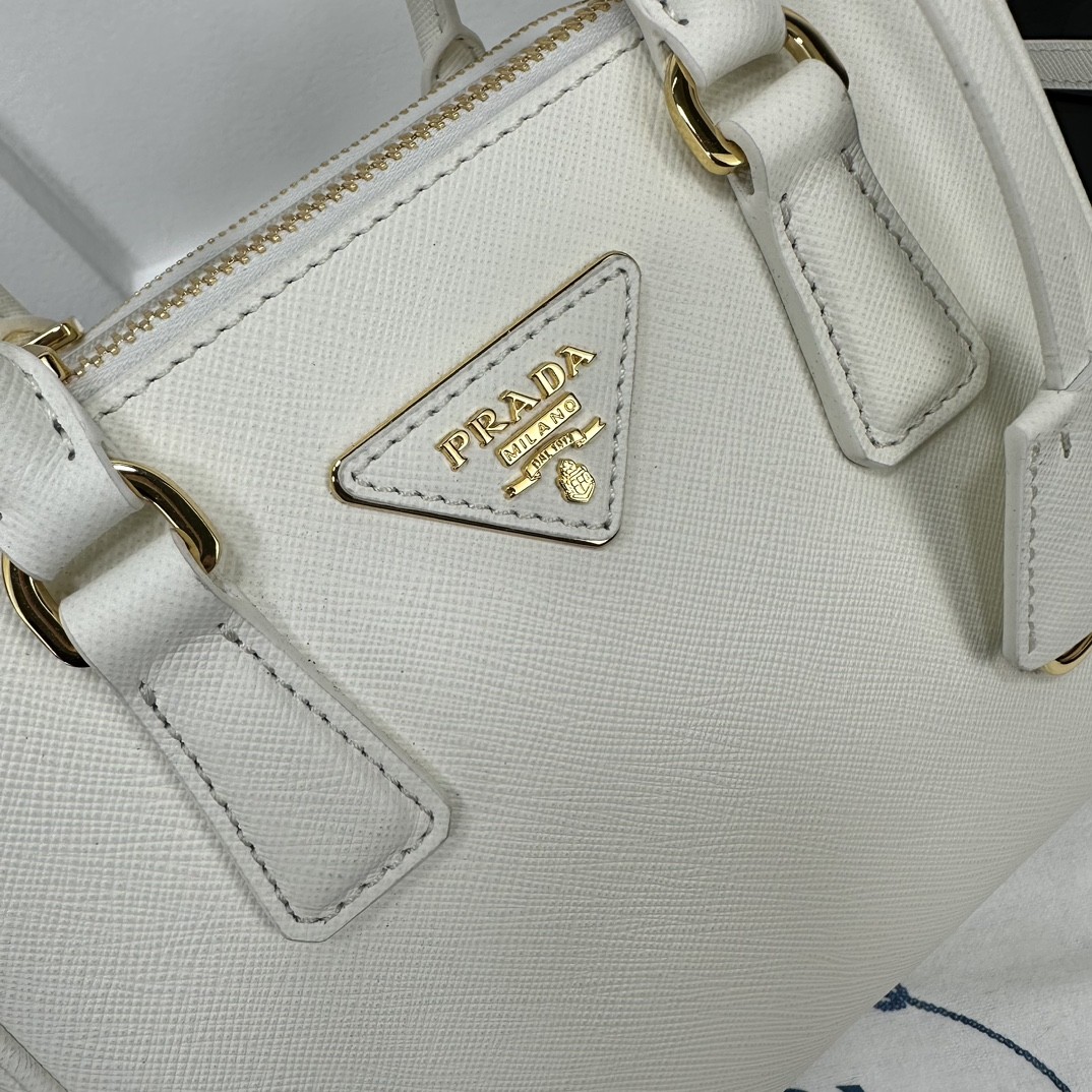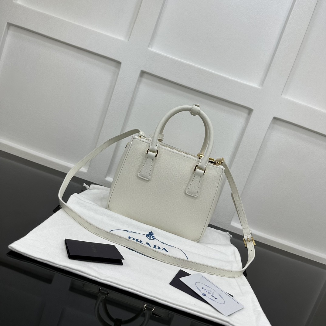【PRADA】Galleria Mini Saffiano 手提包|象牙白 × 金扣 × 雙層拉鍊