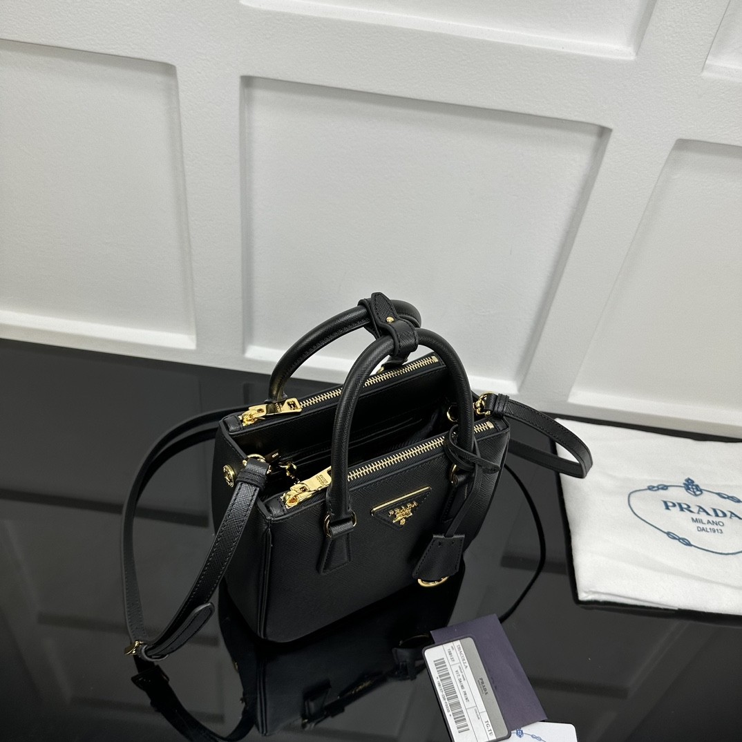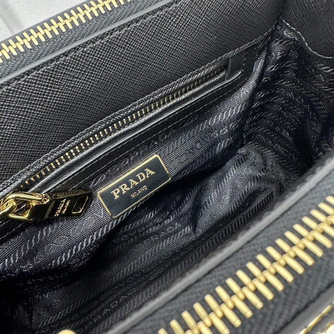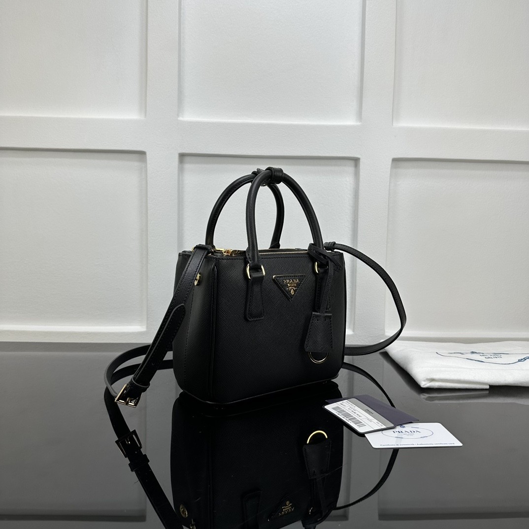 【PRADA】Galleria Mini Saffiano 手提包|經典黑 × 金扣 × 雙層拉鍊
