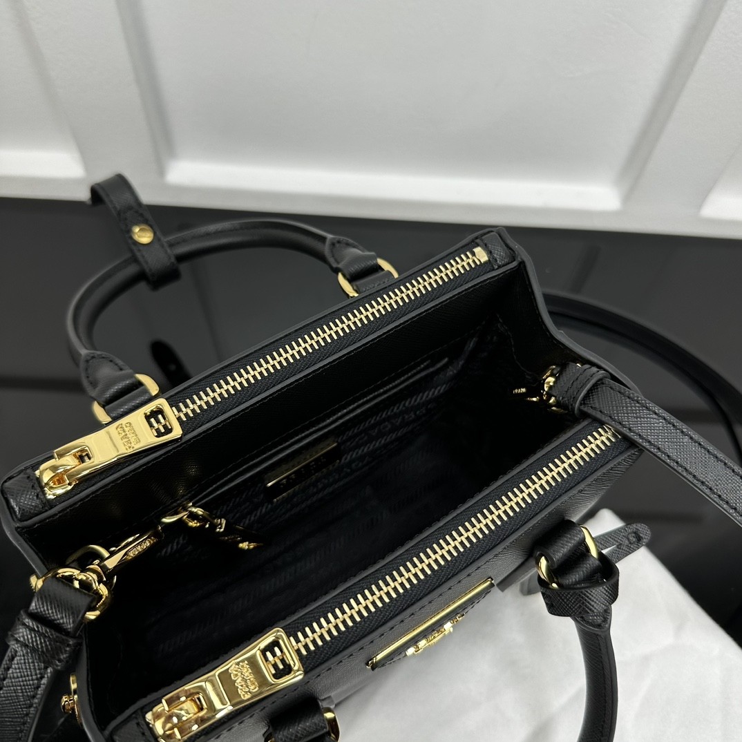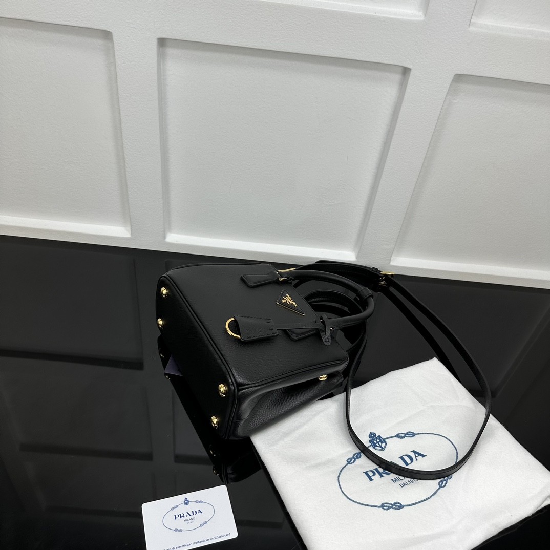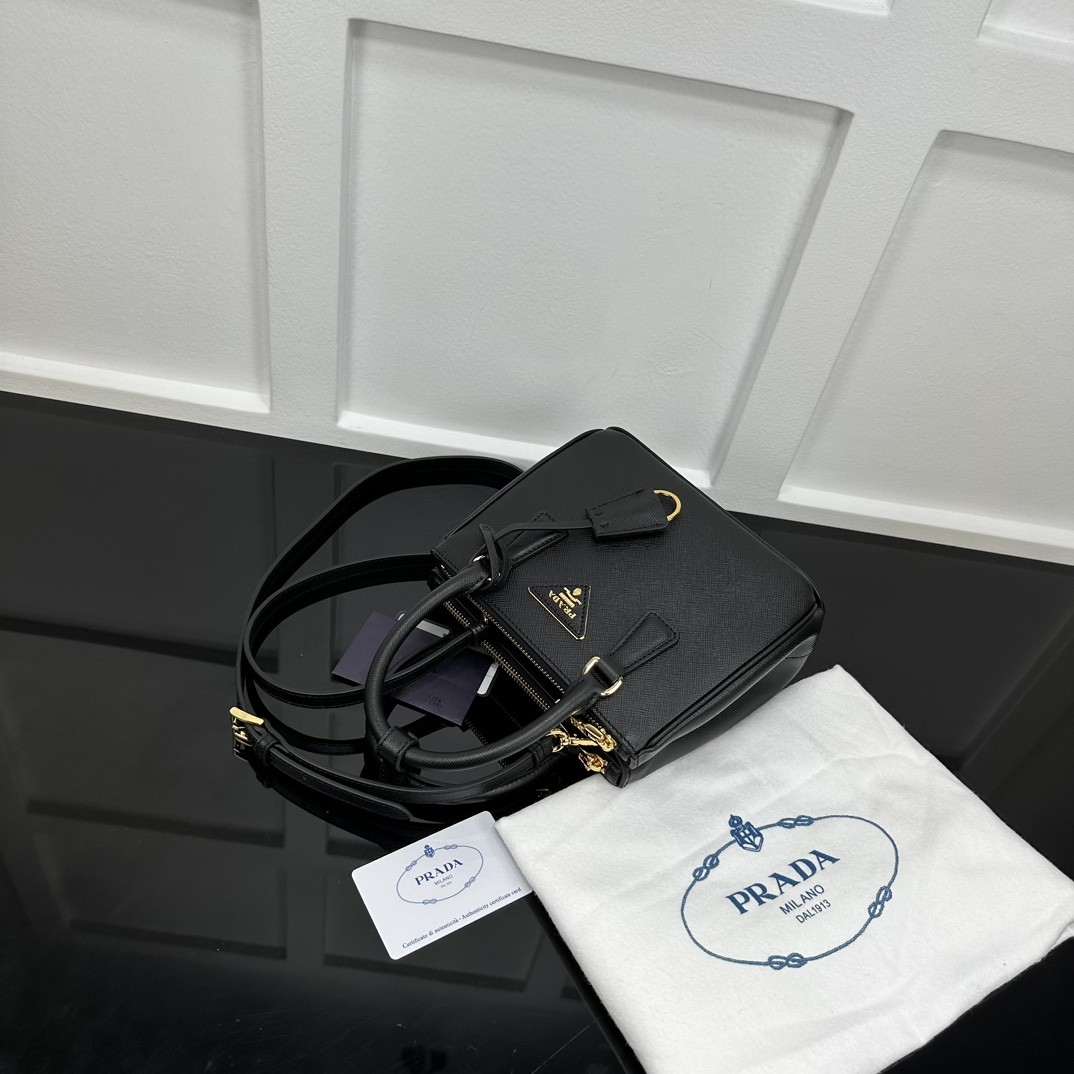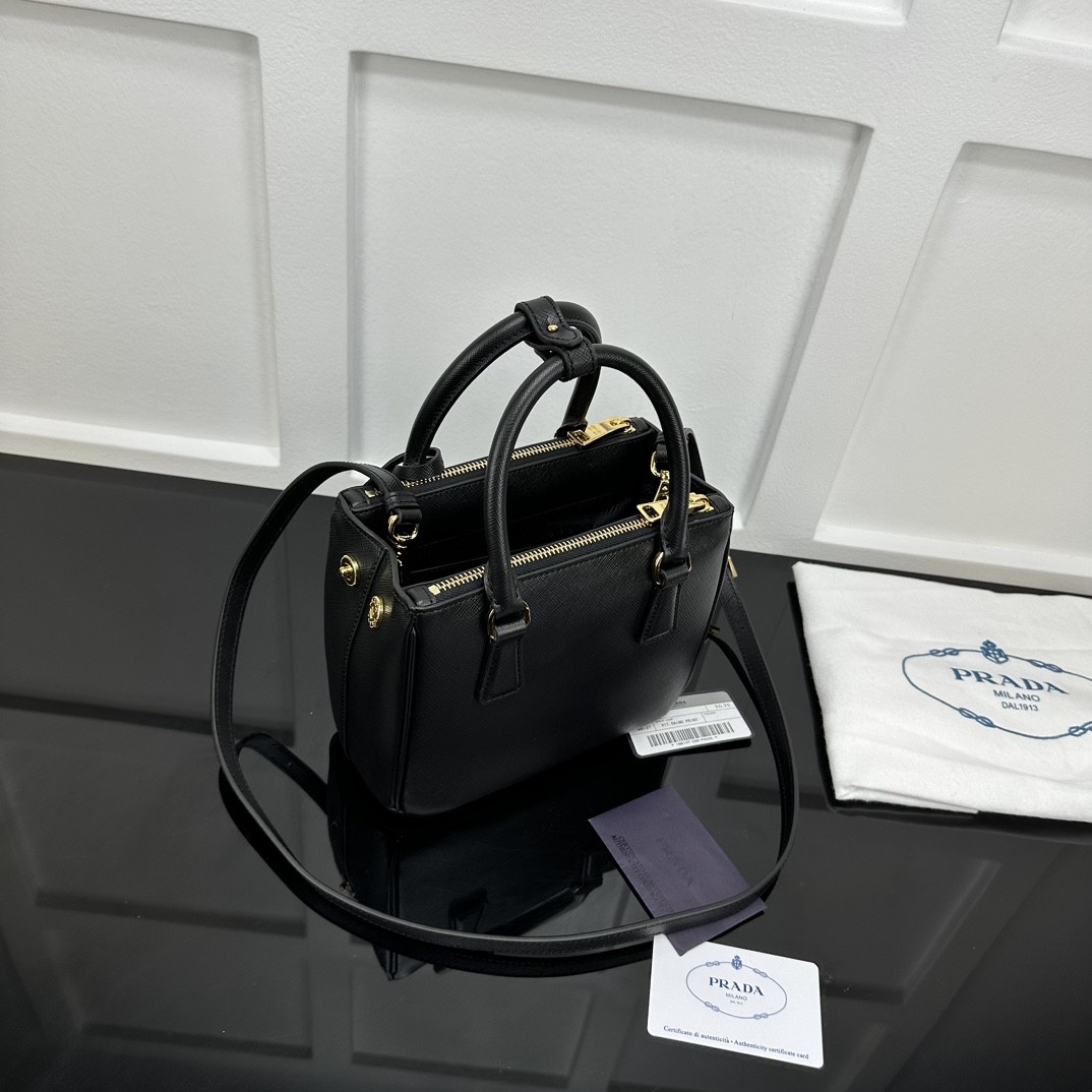 【PRADA】Galleria Mini Saffiano 手提包|經典黑 × 金扣 × 雙層拉鍊