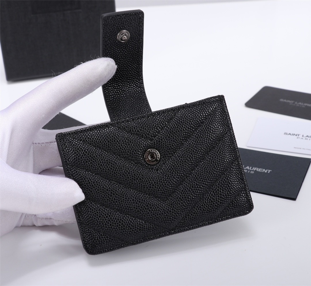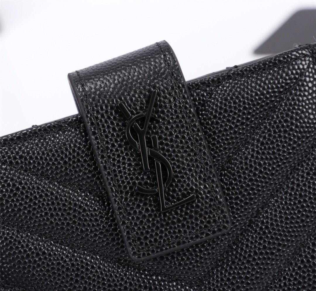【Saint Laurent 聖羅蘭】風琴式短夾(黑銀款)|荔枝壓紋皮革、金色YSL字母Logo、多層收納設計